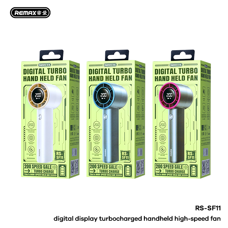 REMAX RS-SF11 Digital Display Handheld High-Speed Fan 3600mAh Battery Powered Turbo Cooling Fan