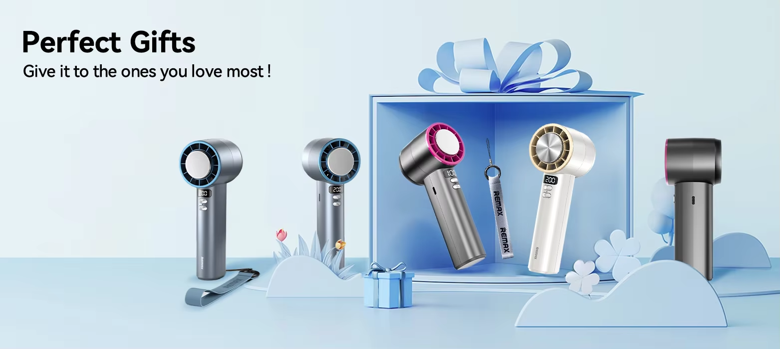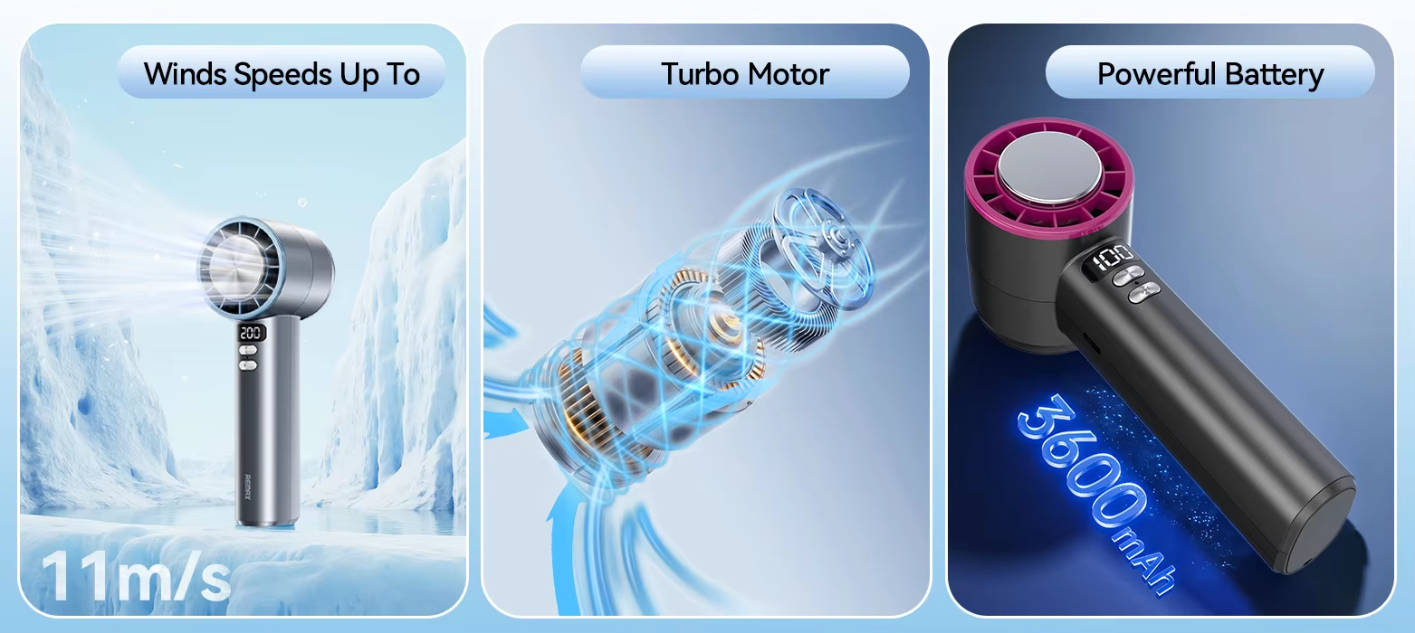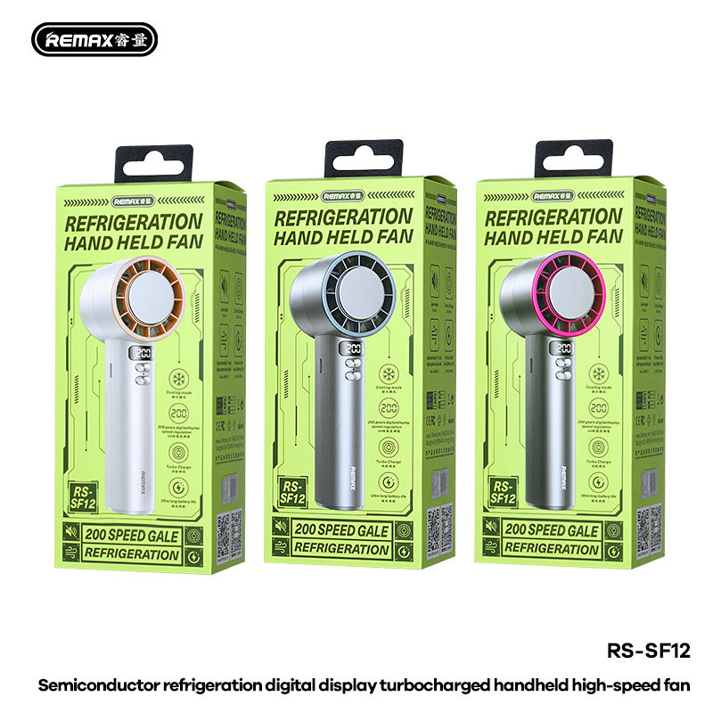 REMAX RS-SF12 Semiconductor Cooling Fan 200-Speed Digital Display Instant Ice Cooling Turbo Dual Airflow Portable Handheld Fan