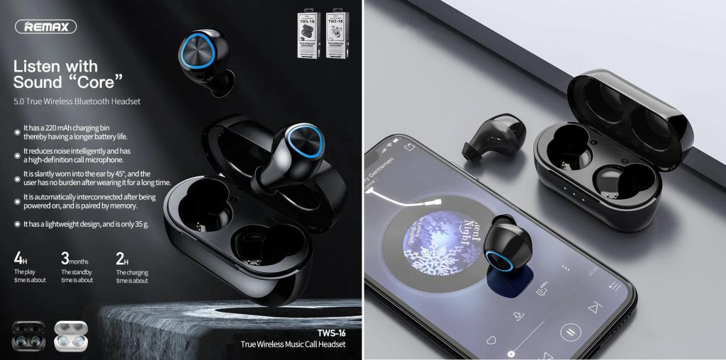 The Remax TWS-16 True Wireless Stereo Earbuds features the latest Bluetooth V5.0 technology. From there, it provides a very fast and smooth 10m connection range. Supports good compatibility with all operating systems from Android to iOS, simple connection with smartphones via Bluetooth. In addition, the charging dock included on the Remax TWS-16 Bluetooth headset is also integrated with a 200mAh battery capacity, allowing users to charge the headset 3 times, providing enough power when there is no direct power source. 40mAh headphone capacity for up to 4 hours of music and talk time experience while only 1.5 hours fully charged.