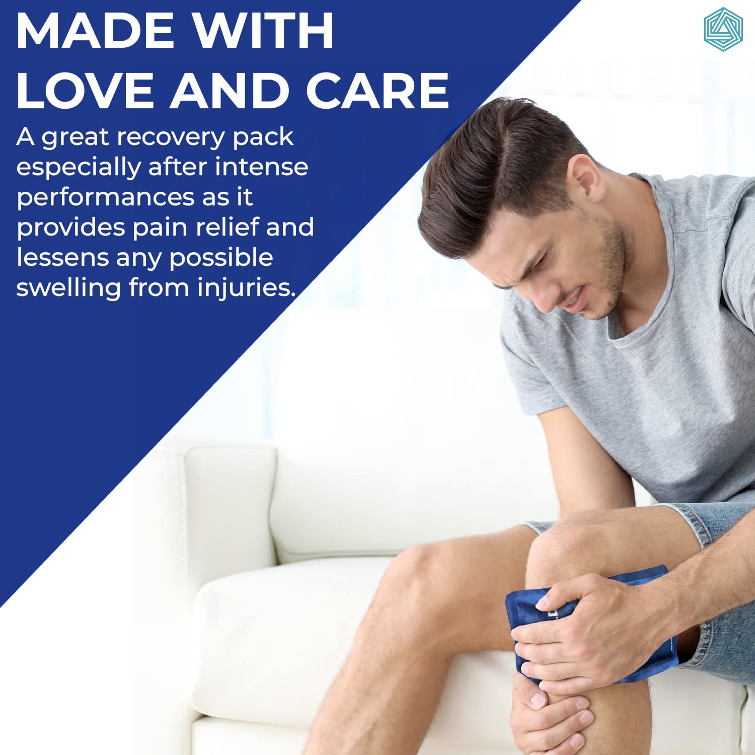 - MULTIFUNCTIONAL: Hot & cold reusable ice bag for pain relief cold therapy reduces swelling and bruises and offers instant pain relief when dealing with acute and chronic pain, back pain, neck and knee pain, post-surgery, or sport injuries. It will help ease up your pain towards a speedy recovery. Use them on your knee, ankle, shoulder, neck, head, jaw, elbow, wrist, or anywhere else you need an ice pack.