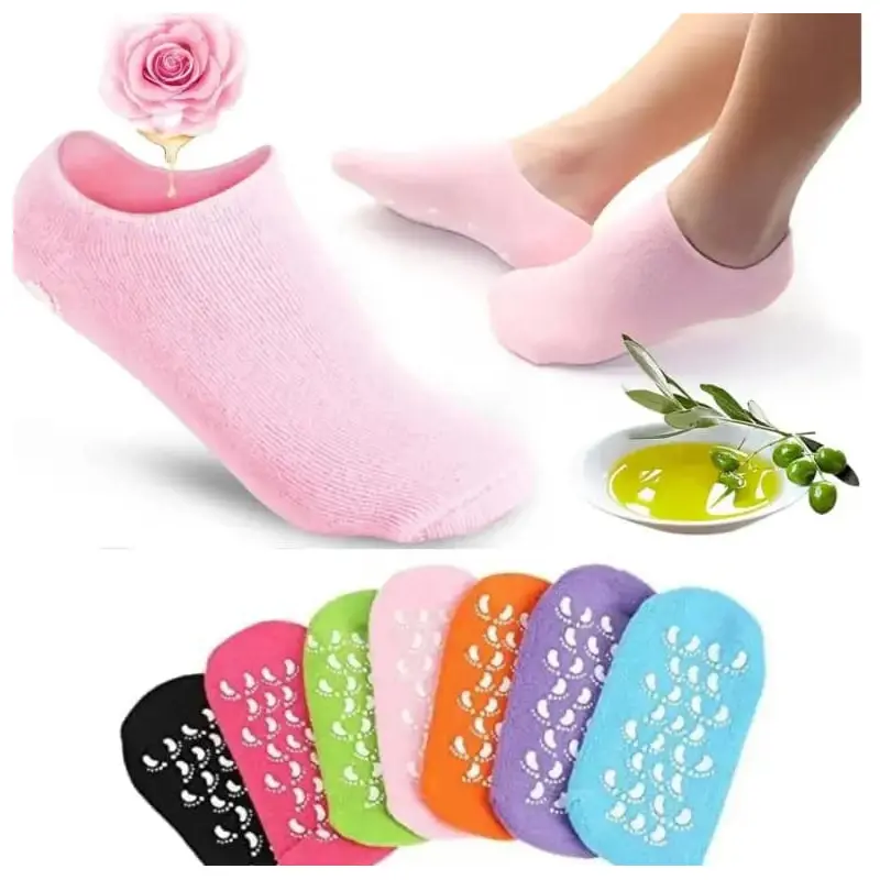 Reusable SPA Silicone Gel Socks (1 Pair) deliver at-home spa luxury, locking in moisture with premium silicone gel to heal cracked heels, soften calluses, and smooth rough skin. These reusable socks feature non-slip dots for safety, breathable fabric for comfort, and infused oils like rose and olive for deep hydration.