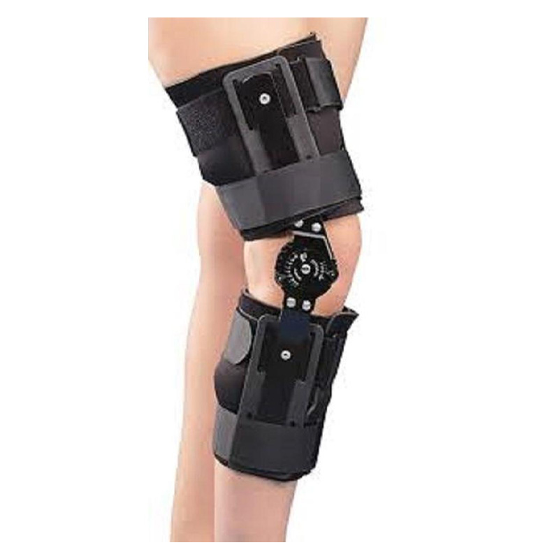 About Tynor R.O.M Knee BracePrefabricated, custom adjusted R.O.M. Knee Brace controls and restrict flexion/extension of the knee joint through a multi-point joint fixation system to allow a range of motion or immobilization to the knee. Universal design allows it to be used on quite a big range of population and for a multiple orthopedic problems associated with knee joint. R.O.M. Knee Brace controls and restricts degree of flexion of the knee joint through a multi-point fixation system to allow a range of motion or immobilization to the knee. Universal design allows it to be used on most patients and for multiple orthopedic problems
