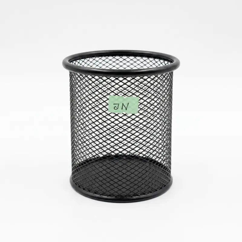 - Product Name -Black Metal Mesh Round Pen Holder desktop