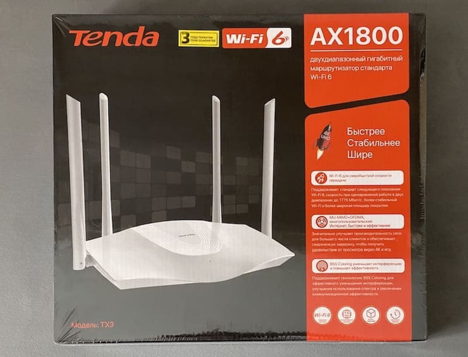 Tenda TX3 AX1800 1775Mbps Dual Band Gigabit Wi-Fi 6 Router (White)