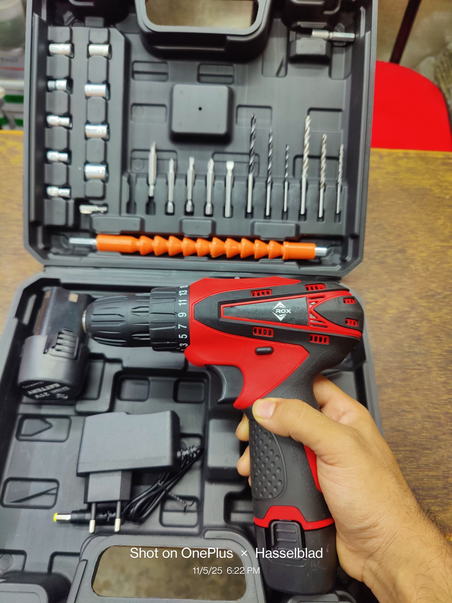 Rox 21V Cordless Drill Machine 28PCS Double Battery Set হলো ঘরোয়া ও পেশাদার উভয় ব্যবহারকারীর জন্য আদর্শ একটি টুল। এর শক্তিশালী 21V মোটর এবং ডাবল ব্যাটারি সিস্টেম আপনাকে দীর্ঘক্ষণ নিরবচ্ছিন্ন কাজের সুযোগ দেয়। 28 পিস টুল সেটে রয়েছে বিভিন্ন ধরনের ড্রিল বিট ও স্ক্রু হেড, যা যেকোনো ধরনের DIY বা রিপেয়ার কাজকে সহজ ও দ্রুত করে তোলে। এর হালকা ও আরামদায়ক ডিজাইন হাতের ক্লান্তি কমায়, এবং বিল্ট-ইন LED লাইট অন্ধকার জায়গাতেও কাজ করতে সহায়তা করে।