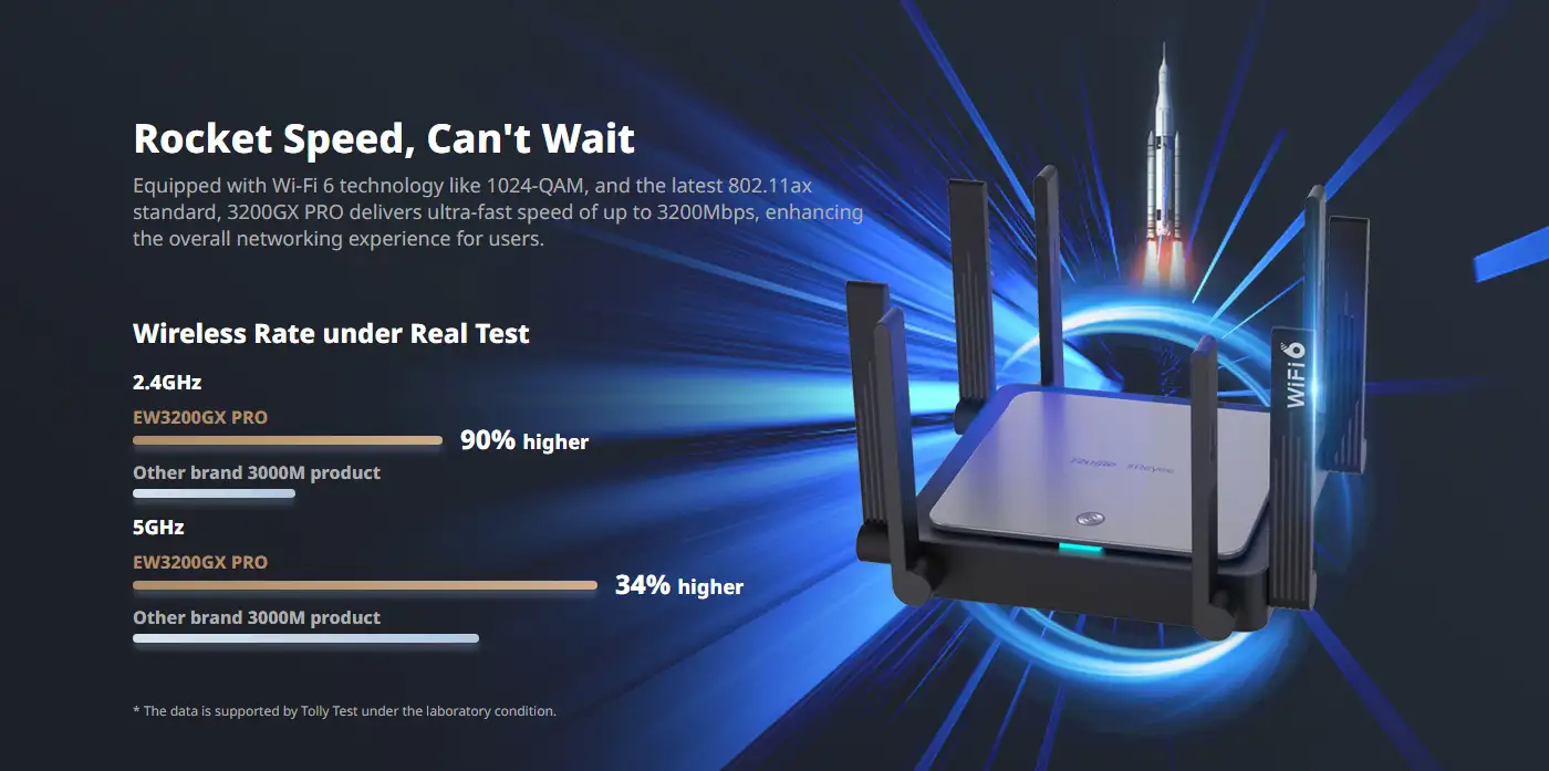 The Ruijie RG-EW3200GX PRO 3200 Mbps Gigabit Dual-Band Mesh Wi-Fi 6 Router is a powerful and modern networking solution designed to deliver high-speed, reliable, and stable internet performance for homes and offices. It ensures faster connectivity, lower latency, and greater efficiency when multiple devices are connected. If you are streaming in 4K, gaming online, or working remotely, this router guarantees seamless coverage and consistent performance throughout your space.
