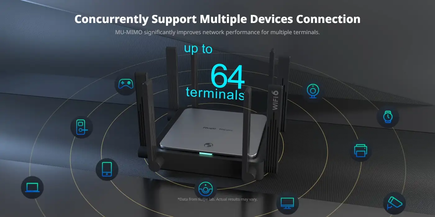 The Ruijie RG-EW3200GX PRO is special because it combines next-generation Wi-Fi 6 technology with a robust dual-band design that provides up to 3200 Mbps total speed. It operates on both 2.4GHz and 5GHz frequencies, ensuring uninterrupted connections and faster data transfer. The router also features OFDMA and MU-MIMO technologies, which allow multiple devices to share bandwidth efficiently without network slowdowns. Its Mesh Wi-Fi capability makes it ideal for large homes or offices, as multiple Ruijie routers can be connected to form a single, seamless network. Additionally, beamforming technology focuses the signal directly toward connected devices, ensuring stronger and more stable connections even at a distance.