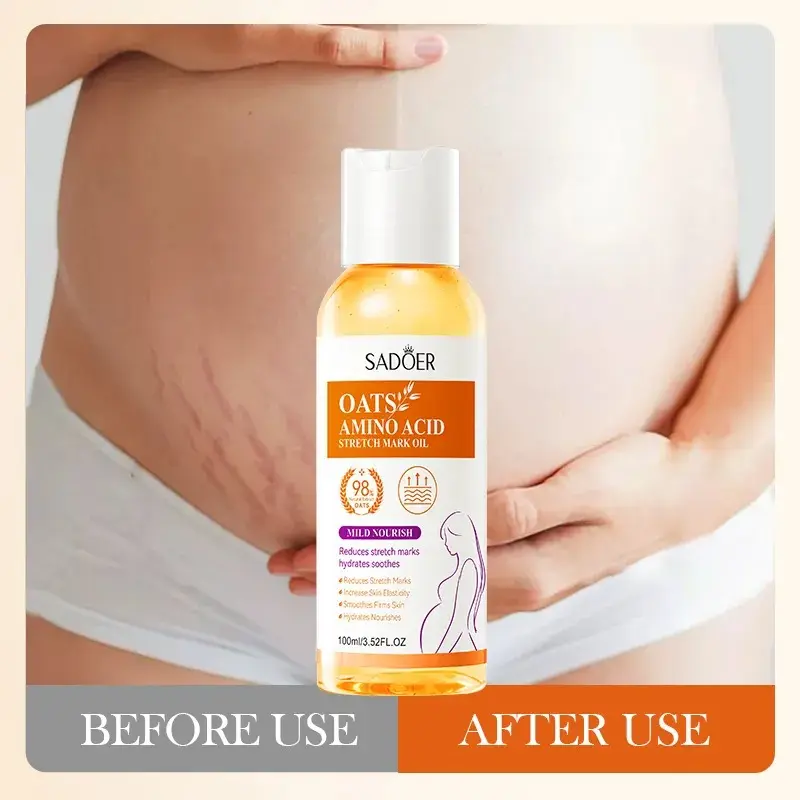 Product Name | SADOER 98% Amino Acid Oats Essential Oil Fade Remove Stretch Mark Repair Smooth Massage Oil Serum For Pregnant Woman Skin Care |