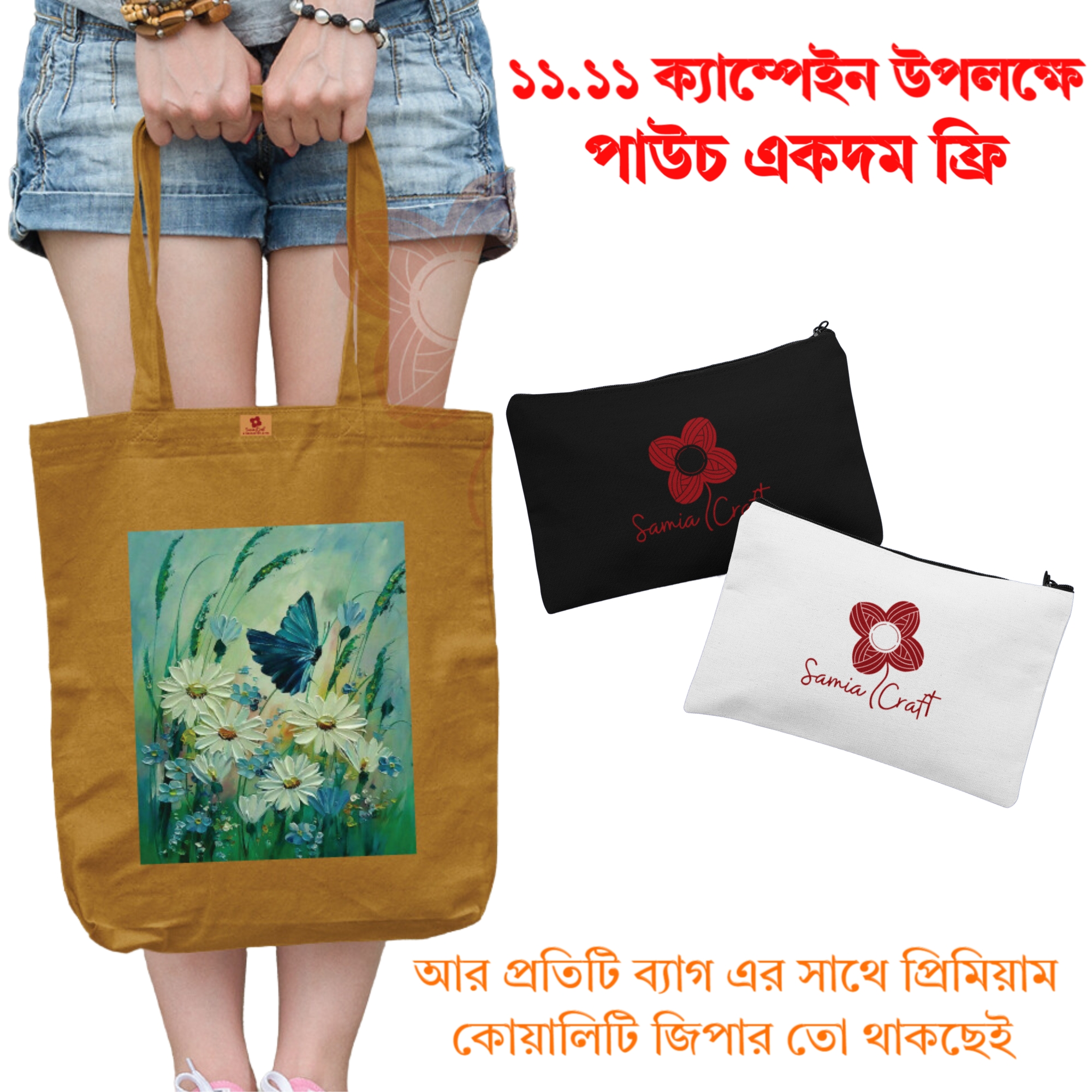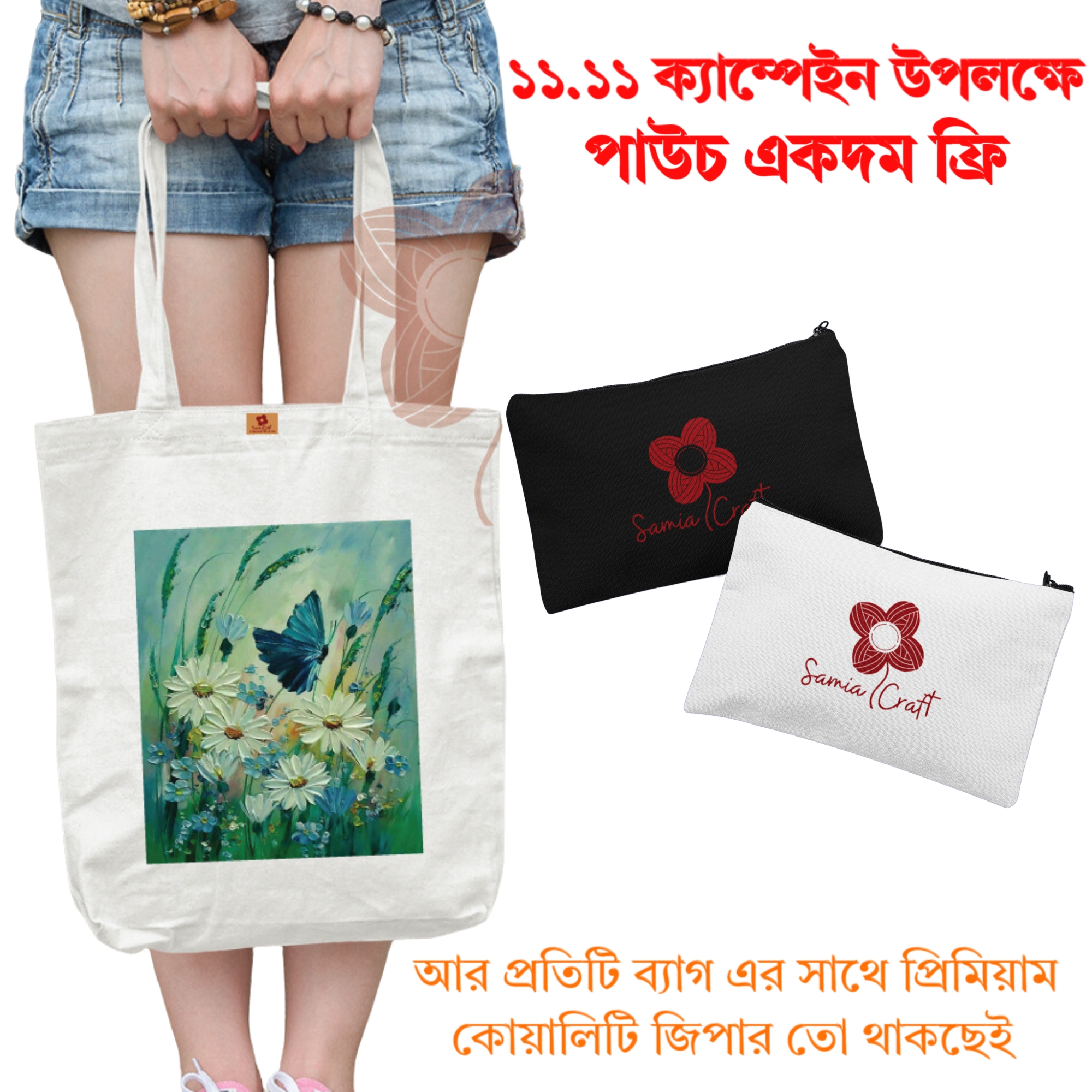 Our Premium Canvas Tote Bag is more than just a bag; it’s a commitment to sustainability and style. Made from 100% organic cotton, it’s a reusable and eco-friendly choice that helps reduce waste and supports a greener planet. Its durable construction ensures that it will last for years, making it a smart investment for anyone who values quality and sustainability. Simple yet elegant, this tote bag is perfect for those who want to make a positive impact while staying stylish. Add this versatile and durable bag to your collection today and enjoy the perfect blend of fashion, functionality, and environmental responsibility.