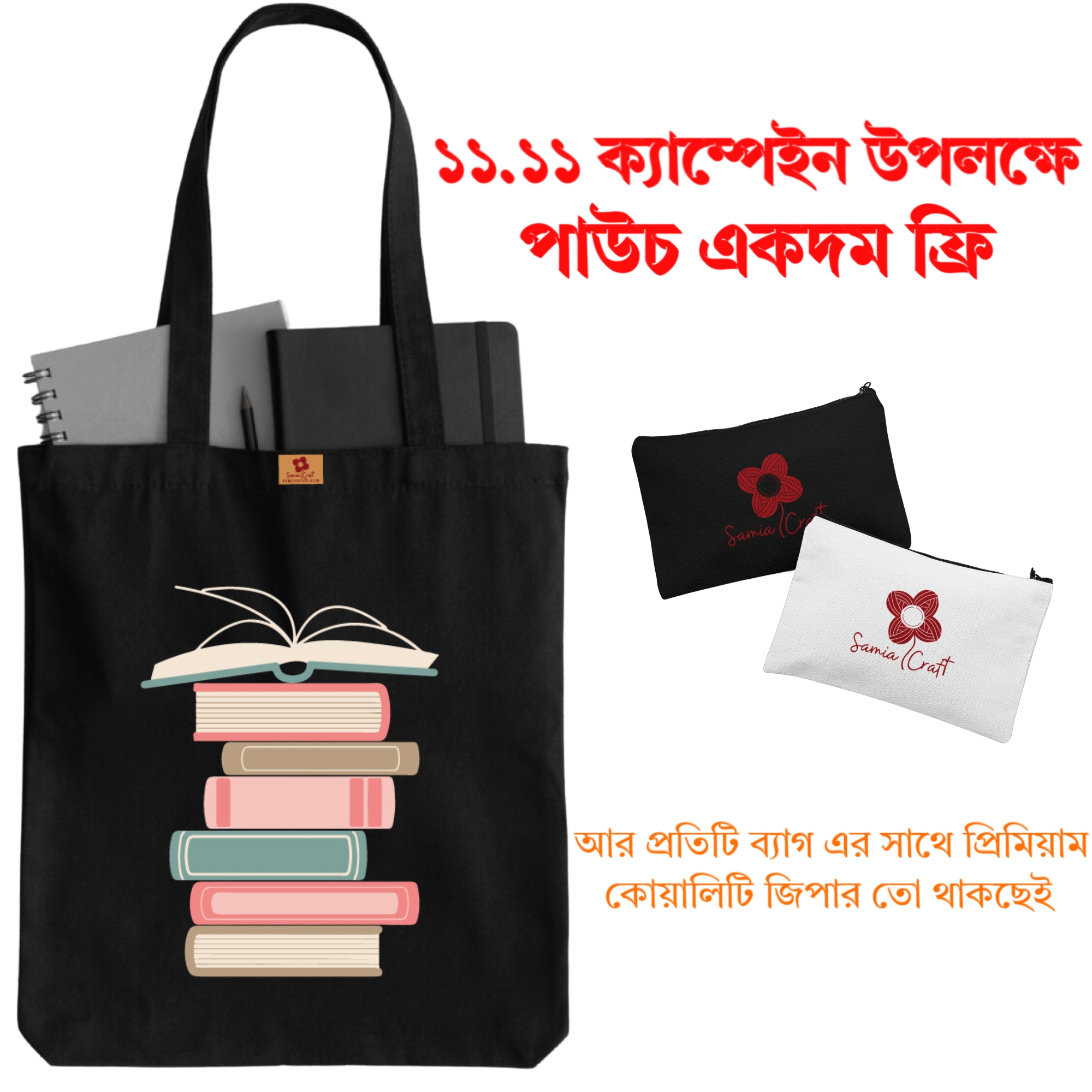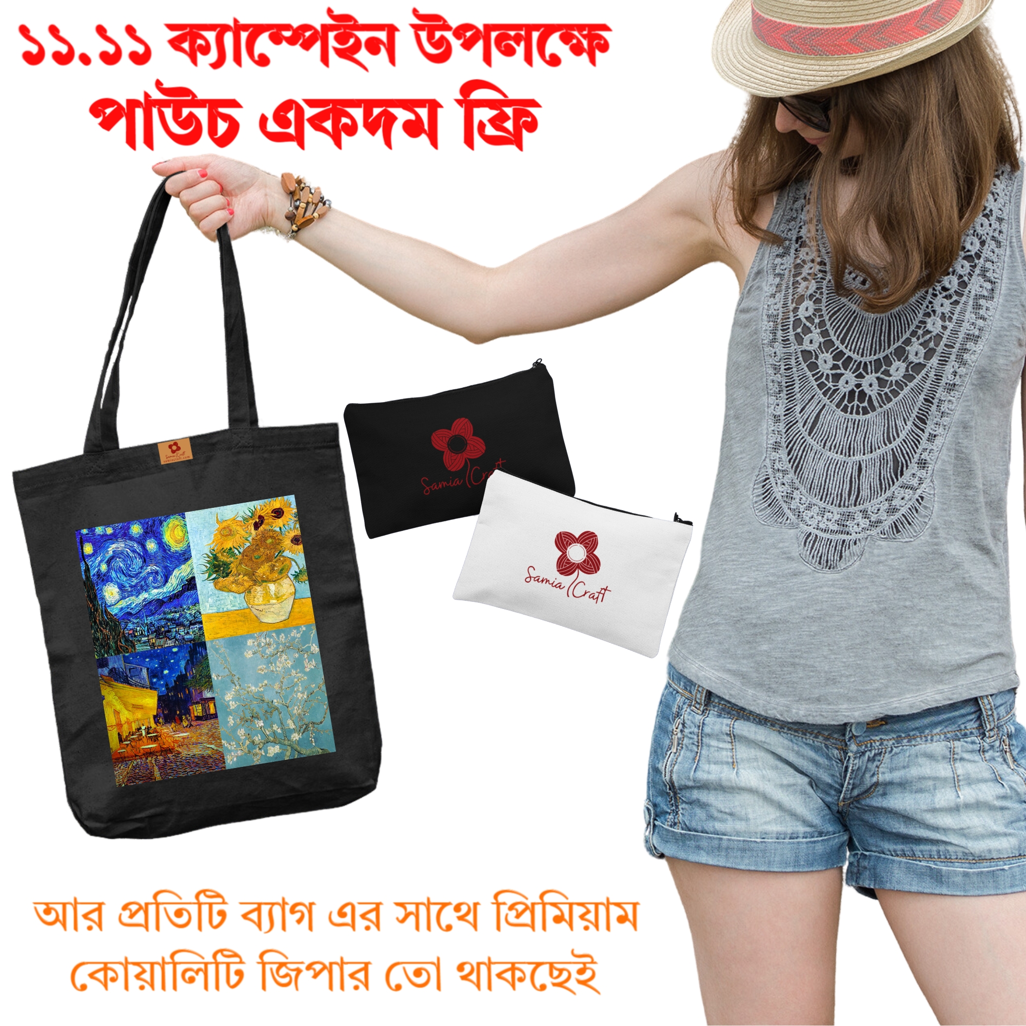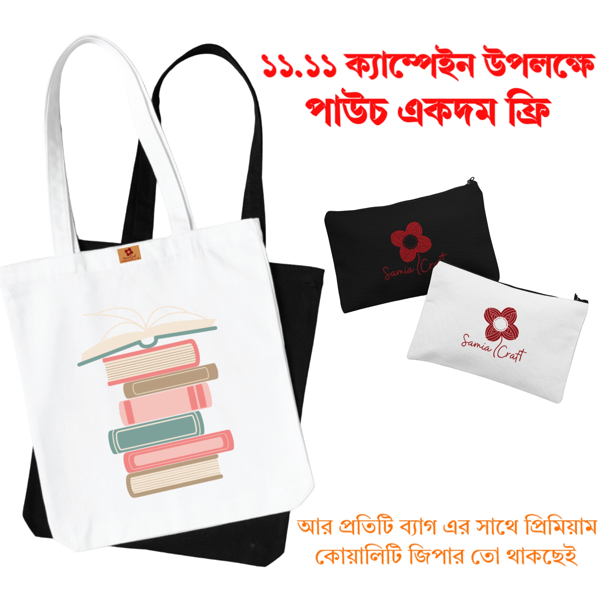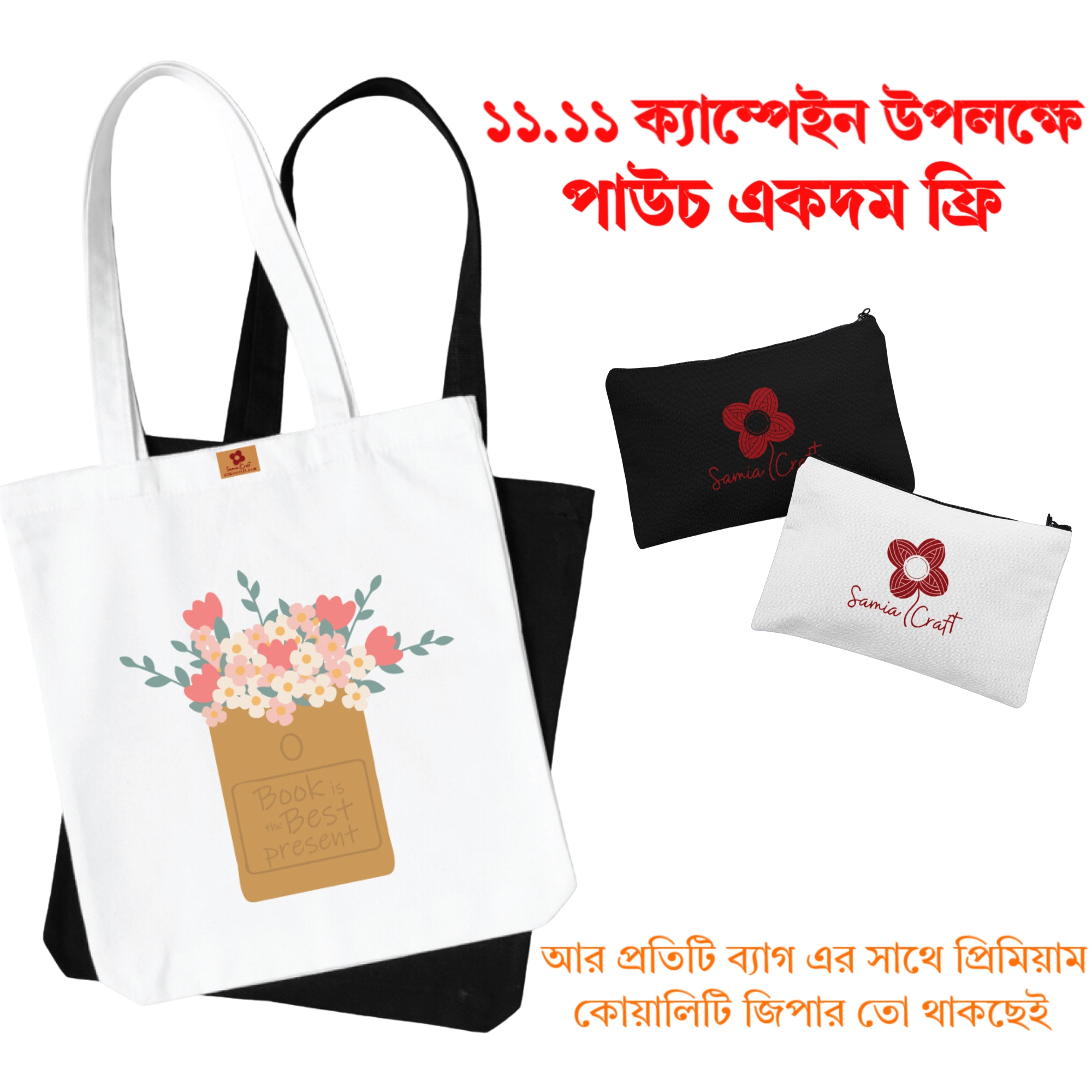 Samia Craft Printed Canvas Tote Bag with Zipper – 14 x 16 Inches, DTF Printed, Eco-Friendly Design