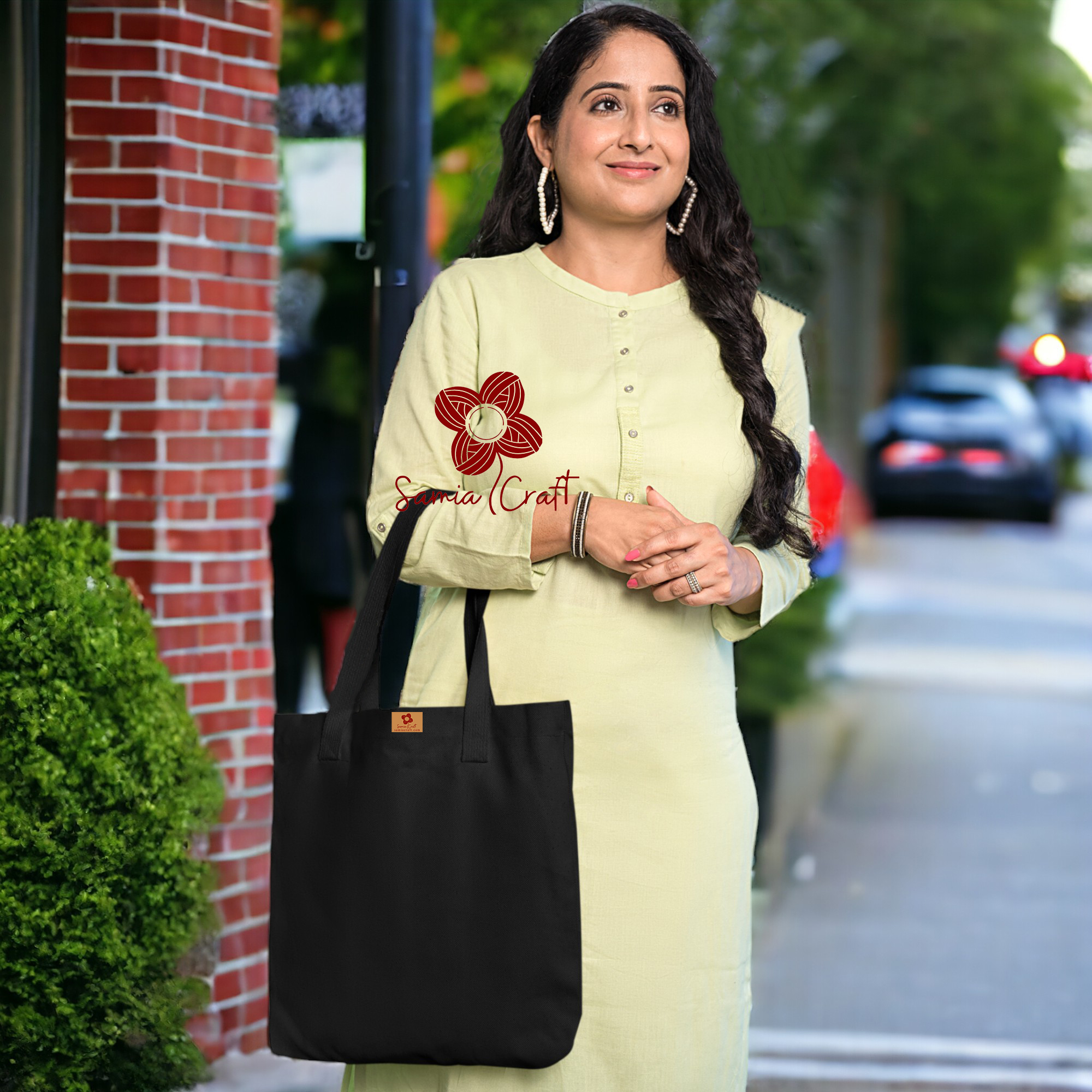 Discover the Trendy Canvas Tote Bag with Zipper by Samia Craft—a stylish, practical, and eco-friendly choice for the modern woman. Perfectly designed for university, college, and everyday use, this tote bag is crafted from 100% organic cotton canvas fabric, ensuring durability while promoting sustainable living. The bag's large capacity of 14 inches in height and 13 inches in width, paired with a 24-inch long handle, makes it ideal for carrying essentials like laptops, books, and more, whether you're heading to class, the office, or a day out shopping.