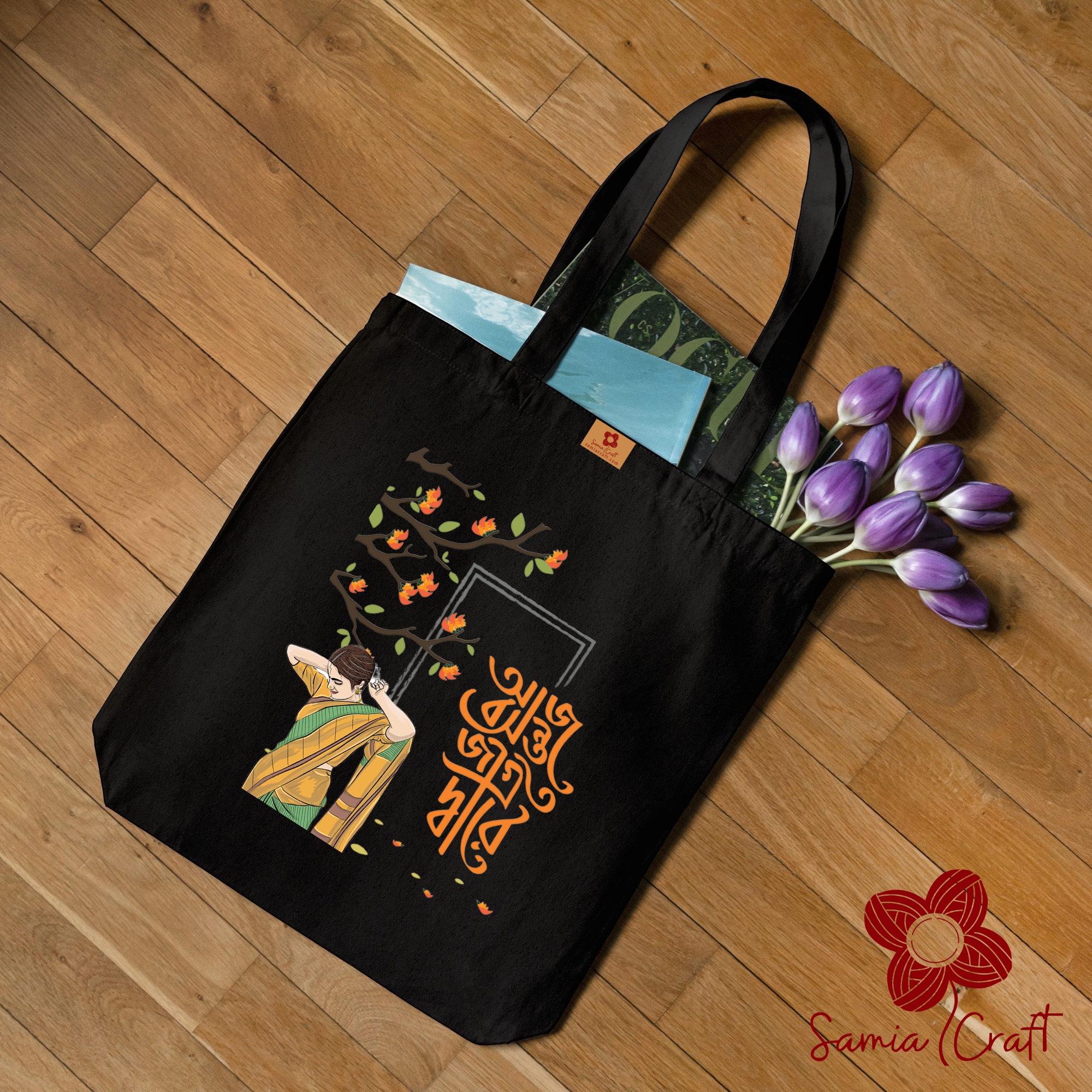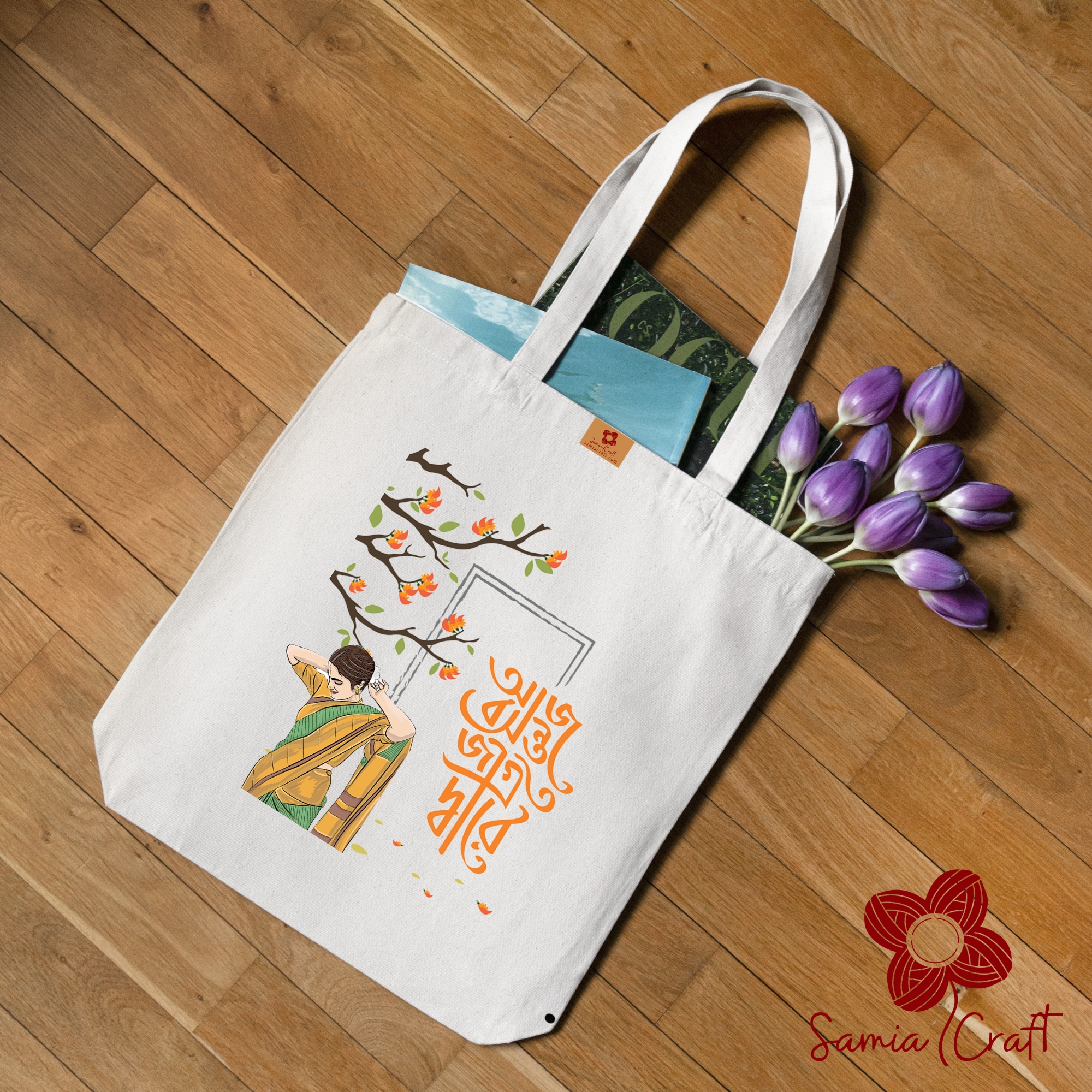 Samia Crafts Bashanto Design Canvas Tote Bag for Women with Zipper - Spring Awakening Bashonto at Doorstep Today
