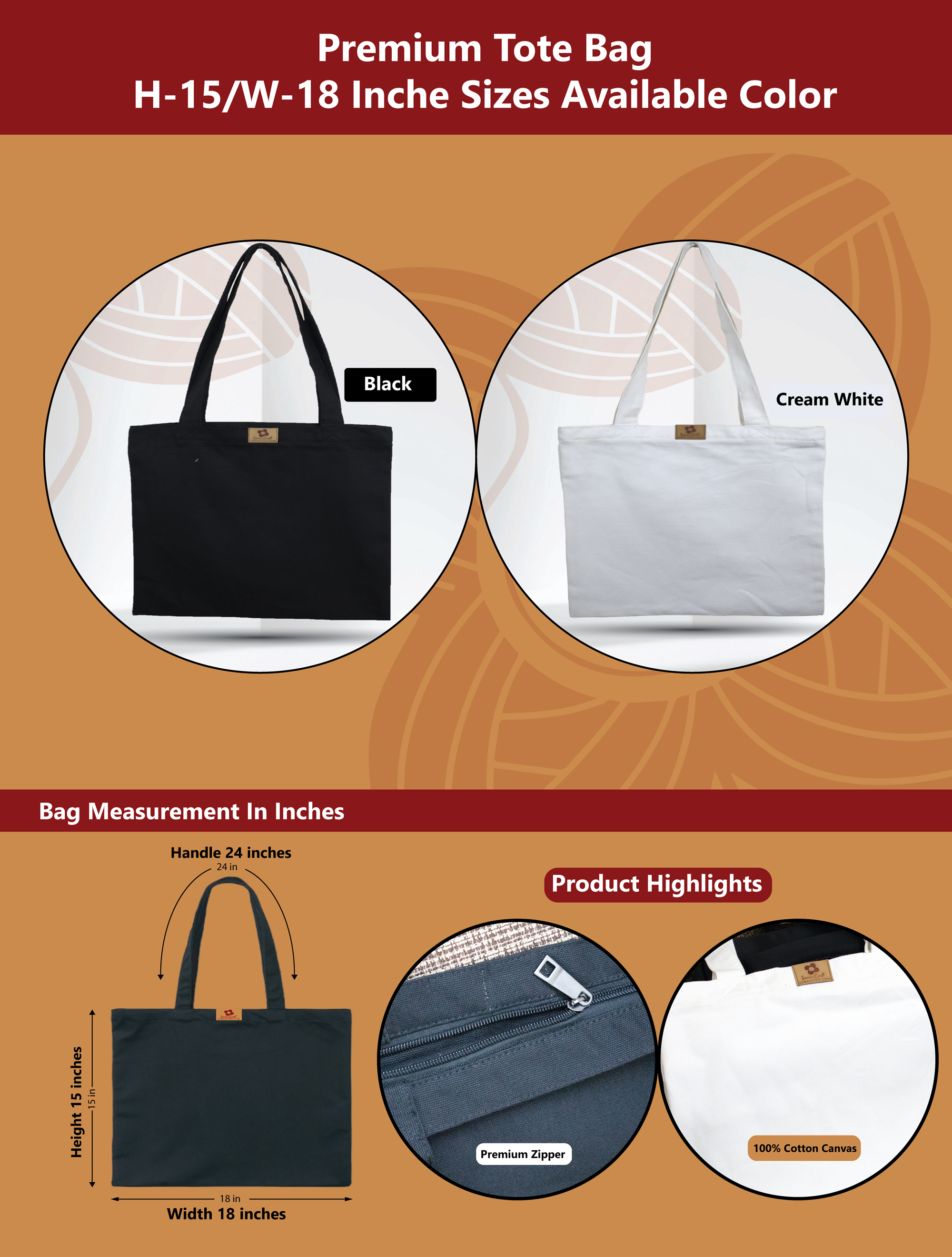 With a spacious size of 18 inches in height and 15 inches in width, this tote bag provides ample room for all your essentials, from laptops and books to daily necessities. The 26-inch long handles make it easy to carry over the shoulder, while the high-quality zipper ensures your belongings stay secure. The single-side printing with a maximum print size of 10/10 inches adds a unique, minimalist design that stands out while remaining timeless and chic.
