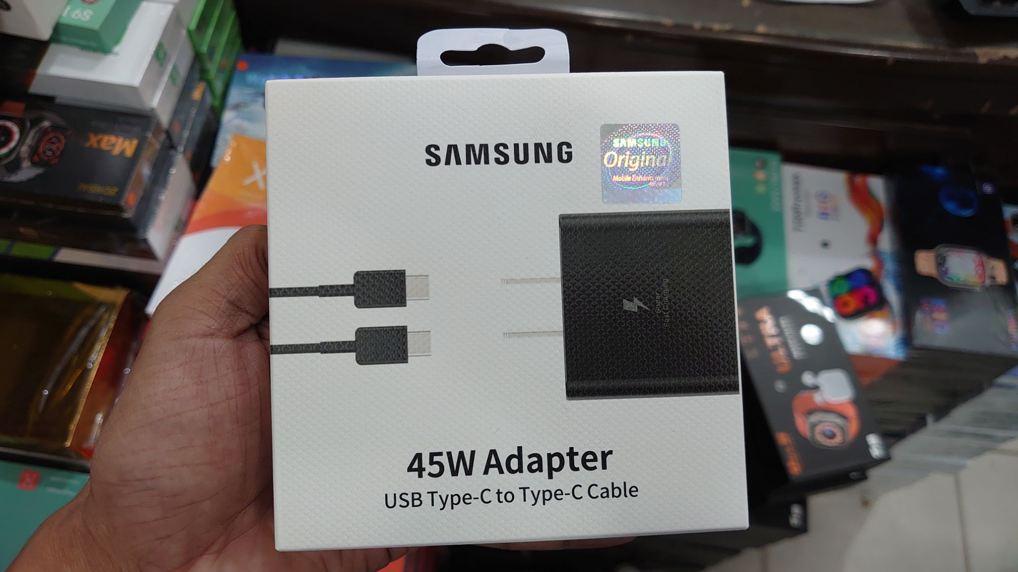 The Samsung 45W USB C Wall Charger with a cable is a versatile accessory compatible with multiple devices such as tabs, phones, earbuds, etc. With its fast charging capability, it charges your device 3X faster, making it an ideal companion for charging on the go. Whether you're in a rush or need a quick boost, this charger ensures efficient and speedy power delivery to keep your devices powered up and ready for action.