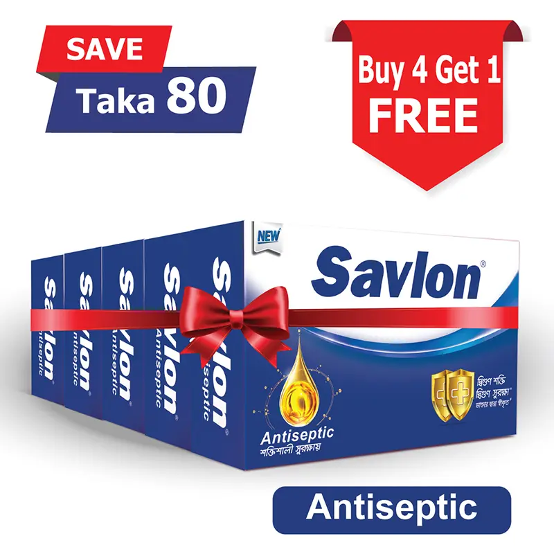 Product Name: Savlon Soap Antiseptic 125 gm New (Buy 4 get 1)