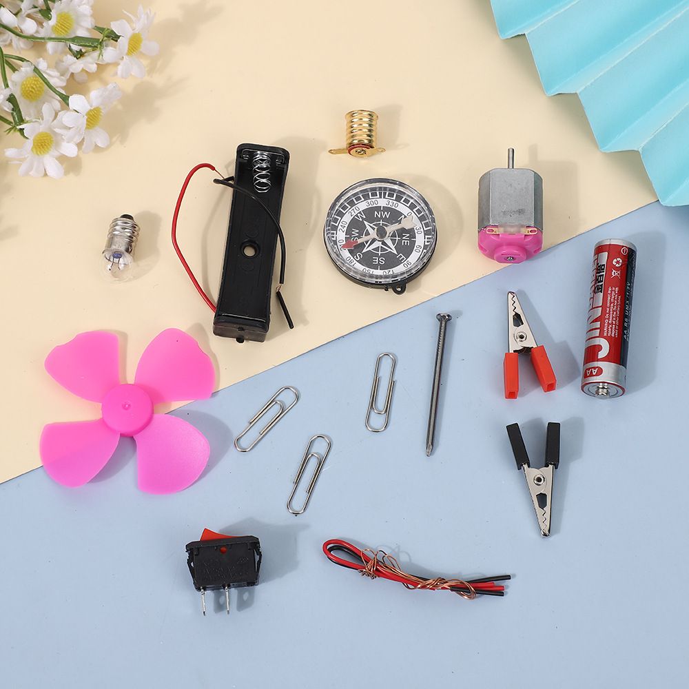 Science Box With Plastic Box Includes Fan, Compass, Light, Battery Electric Circuit Motor School Set 12 Pieces Electronic Science Project Kit for Kids Interesting Project for kids, dr Light Control Fan Circuit Science Diy Kit Educational (Big) |