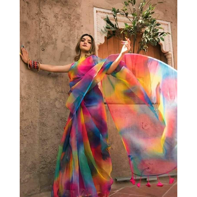 Screen Print Half Silk Saree Without Blouse Piece for Women - Casual & Partywear - Suitable for Any Season