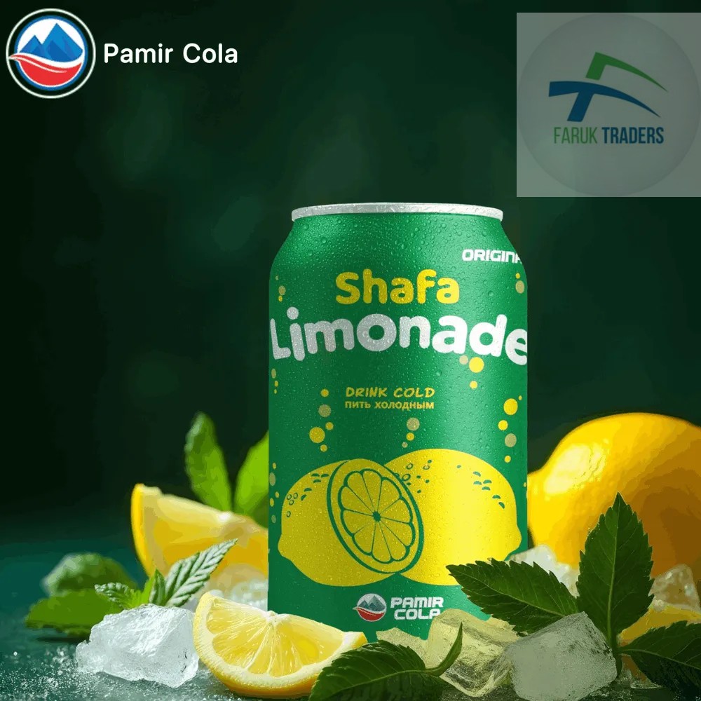 Shafa Limonade 300ml is a refreshing carbonated soft drink from Afghanistan's Pamir Cola Group. It offers a distinctive lemon-lime flavor blending the classic taste of cola with zesty citrus notes. This beverage is known for its crisp and invigorating taste making it a popular choice for quenching thirst and revitalizing the senses. It's suitable for enjoying on its own or as a lively mixer in cocktails and mocktails