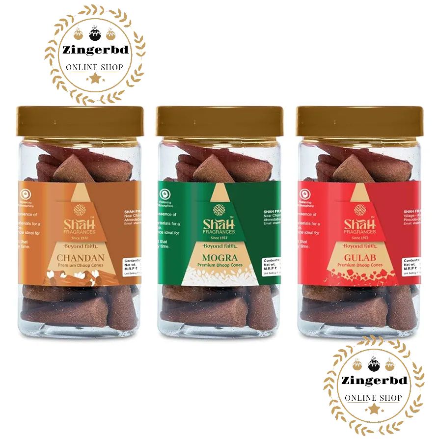 Shah Fragrances Assorted Cone Dhoops (Pack of 3 x 100g) | Rose | Mogra | Chandan Premium Natural Dhoop Cones | Aromatherapy | Relaxation | Home Fragrance