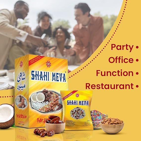 শাহী মেওয়া একটি সহজ ভ্রমণ প্যাকে আসে যা যেতে যেতে এটিকে নিখুঁত করে তোলে একটি ঐতিহ্যবাহী মাউথ ফ্রেশনার - শাহী মেওয়া হল একটি ঐতিহ্যবাহী মাউথ ফ্রেশনার যা বাদাম নারকেল এবং শুকনো খেজুর দিয়ে তৈরি।