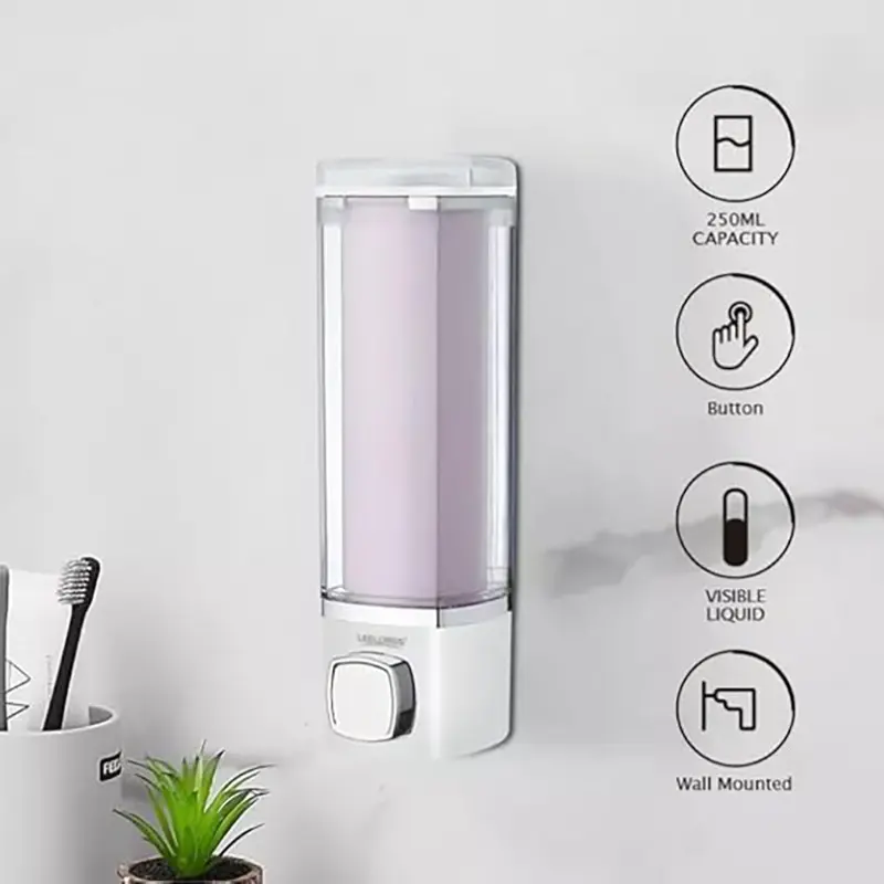 - EASY TO USE: The non-automatic liquid dispenser has a capacity of storing 250 ml of liquid, thus avoiding the hassle of frequent refilling. The leak proof lid and push bottom ensure the liquid remains safely stored inside.