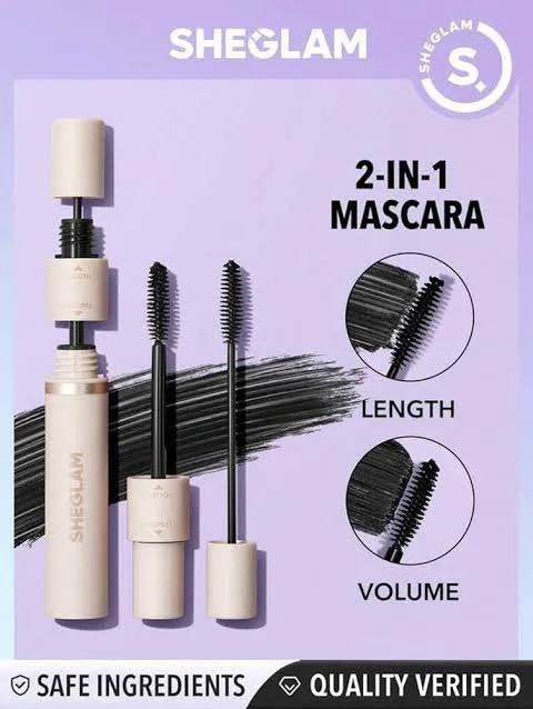 SHEGLAM All-in-One Volume & Length Mascara features a dual-ended brush with two different quick-drying, smudgeproof, yet washable formulas. Apply together or separately for a totally custom, clump-free look that delivers intense volume, length, curl, and separation!