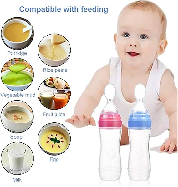 Product details of Silicon Baby Food feeder bottle rice cereal with soft squeeze spoon (Multicolour)-ChinaCan be used for feeding juices, cereal, mashed rice, veggies and all kinds of semi-solids