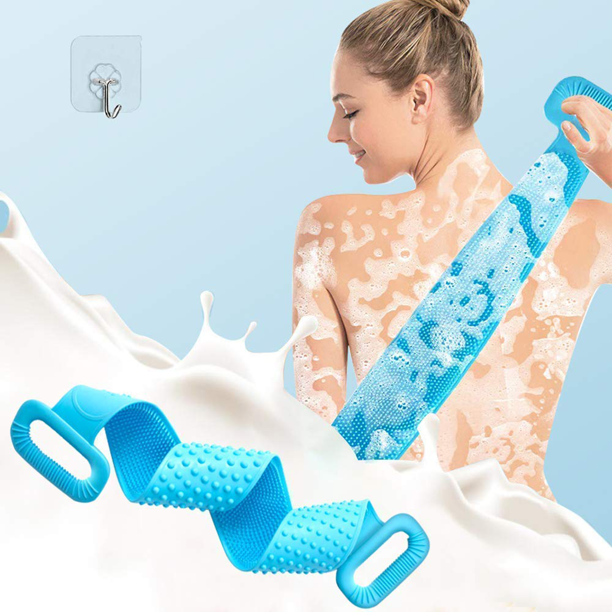 - Silicone Back Scrubber Bath Belt Double-Sided Massage Body Wash Brush Shower Exfoliating Belt Removes Bath Towel, Cleaning Tools for men and women