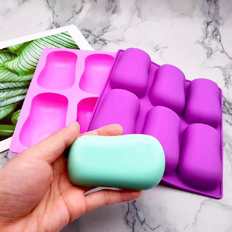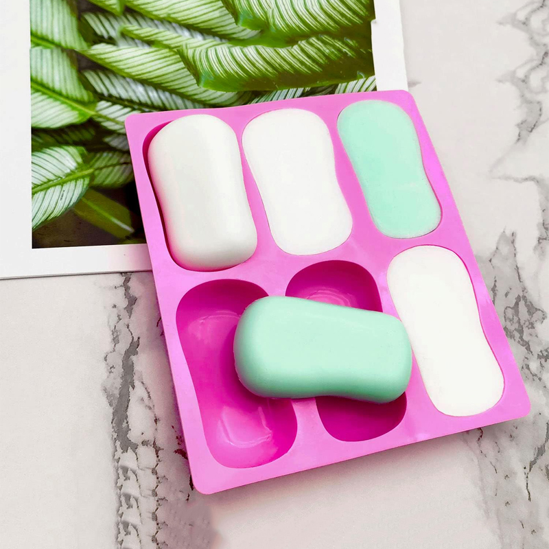 These versatile silicone soap molds feature 6 large rounded-rectangle cavities, perfect for creating professional-looking handmade soaps, bath bombs, and lotion bars.