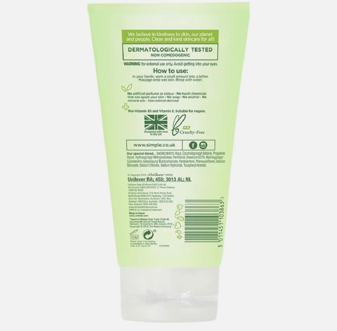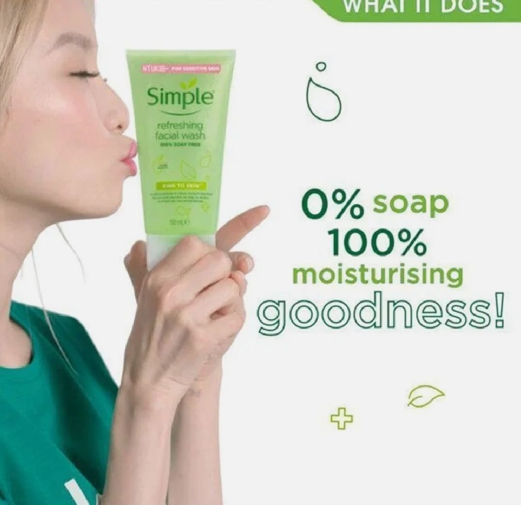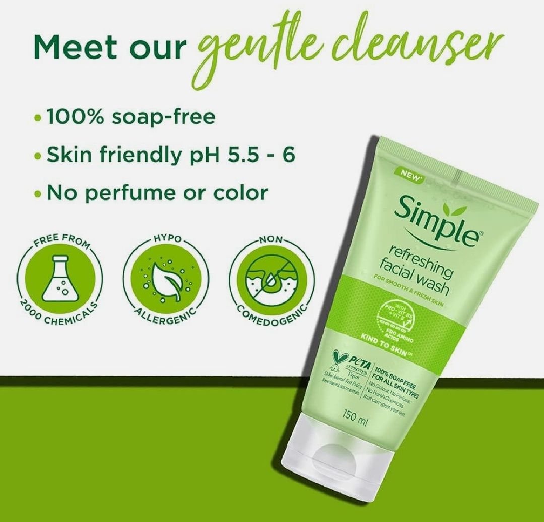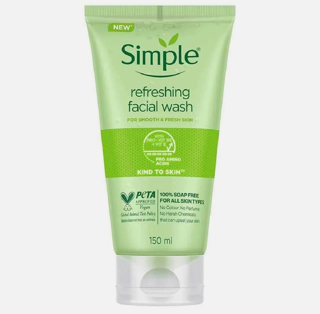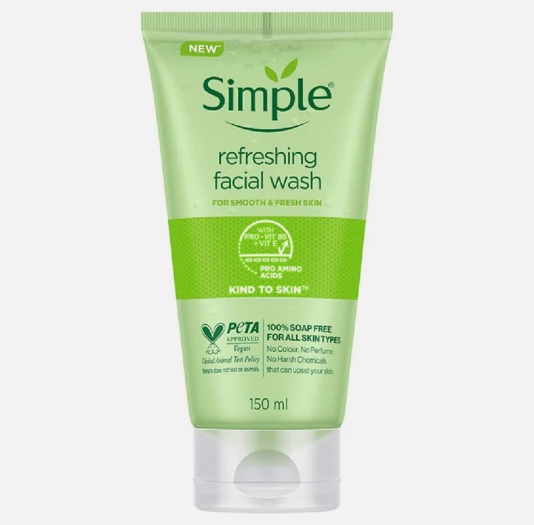 Simple Refreshing Facial Wash is 100% soap-free, vegan face wash which removes dirt, oil and impurities, leaving skin feeling refreshed and revived. No colors, no perfume, no harsh chemicals that can upset your skin. Perfect for even the most sensitive...