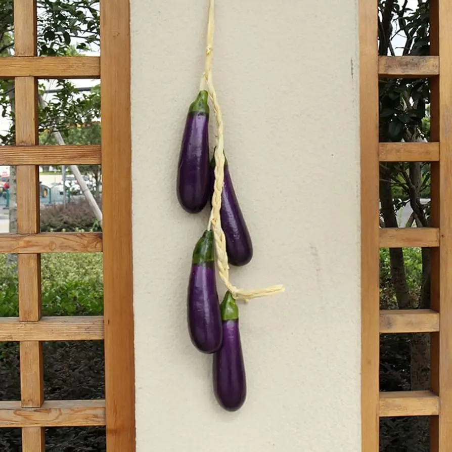 HIGH QUALITY: You will get 2 sets of fake eggplant string. Vegetable skewers can be stored for a long time without deformation and discoloration. Clean with a rag, convenient and clean.