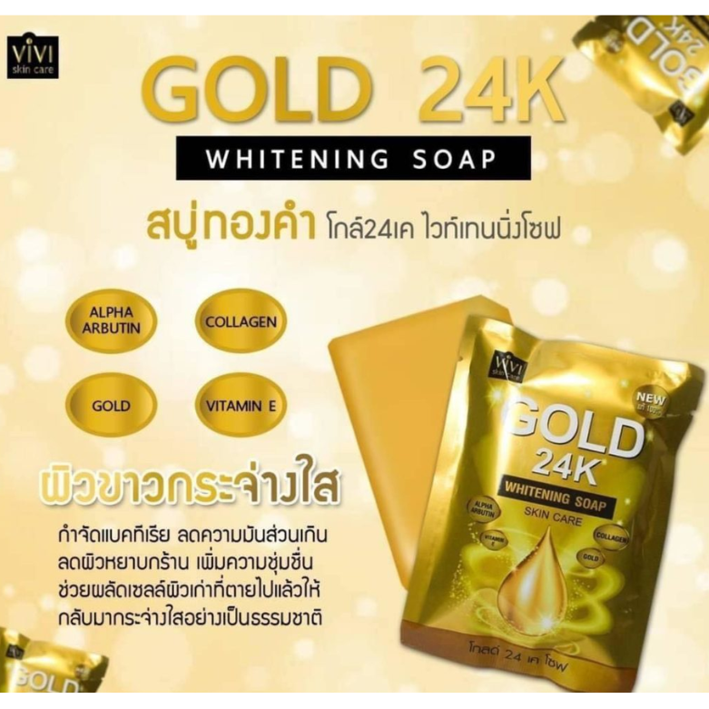 Transform your skincare routine with the luxurious touch of gold and unveil flawless, radiant skin with Vivi Skin Care Gold 24K Whitening Soap! 💛✨