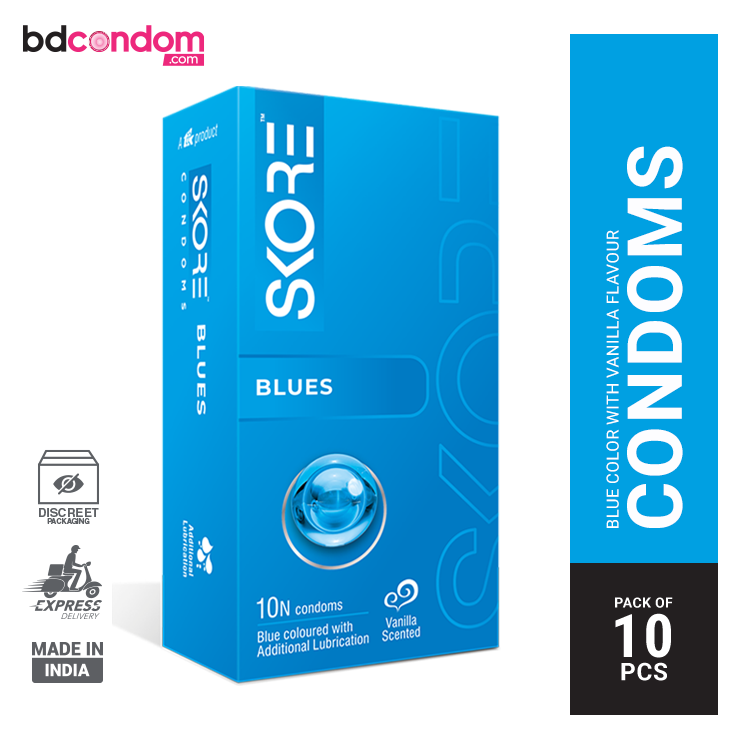 Skore Blue Coloured With Vanilla Flavoured Condom - 10Pcs Pack (India)