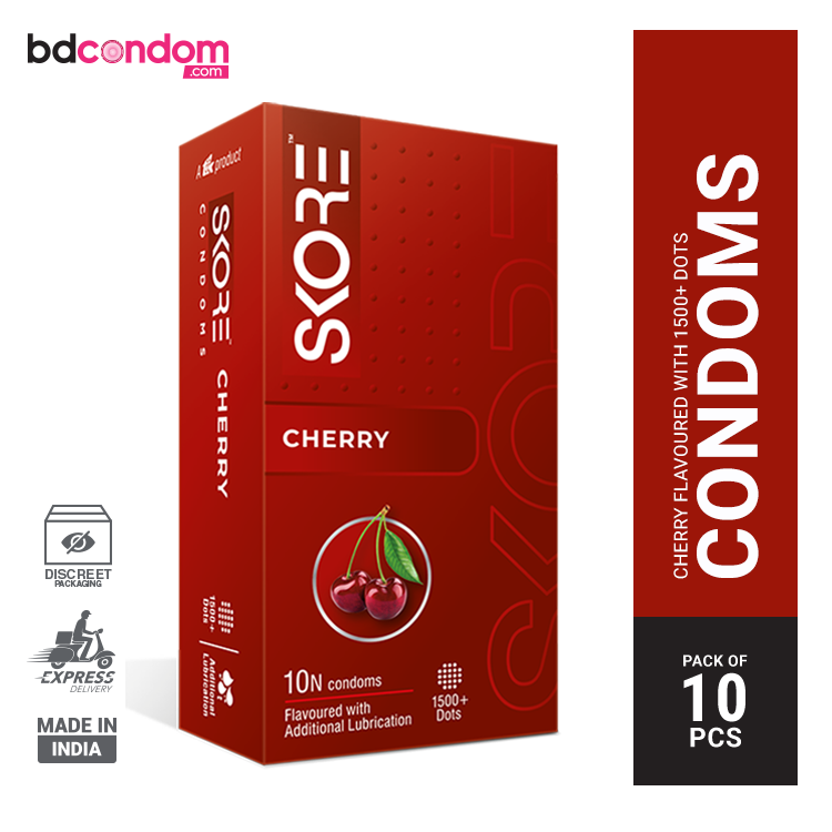 Skore Cherry Flavored 1500+ Dotted with Extra Lubrication Condom - 10Pcs Pack(India)