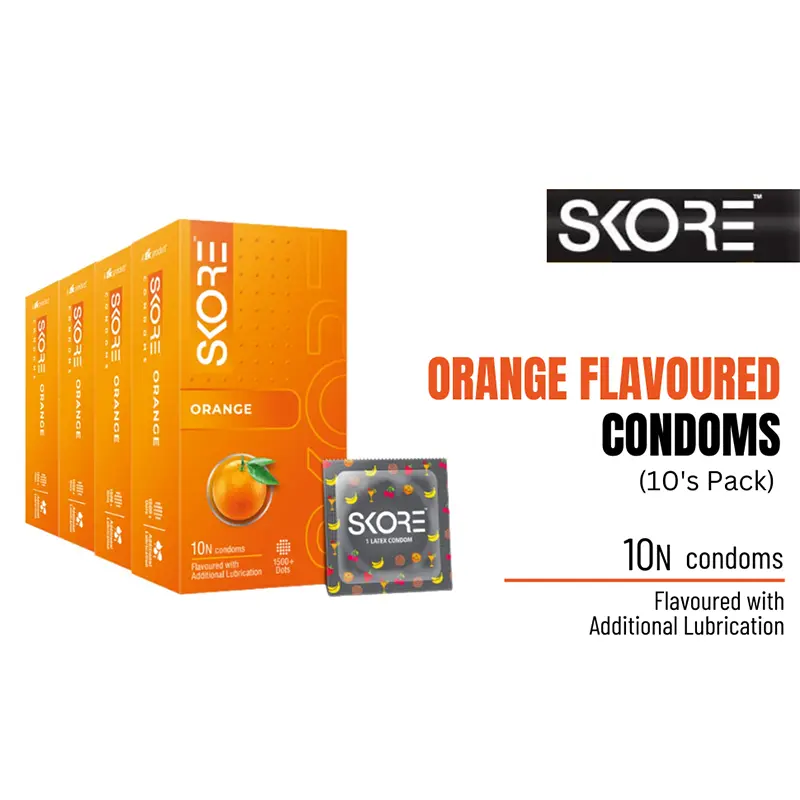 Make intimacy zestier with the Skore Orange Flavoured Condom – 10 Pcs. With its fresh citrus flavor and smooth texture, this condom is perfect for those who want to combine protection with playful pleasure. Made from high-quality latex and electronically tested for safety, it ensures both excitement and confidence during intimate moments. Add a twist of orange to your night with Skore!