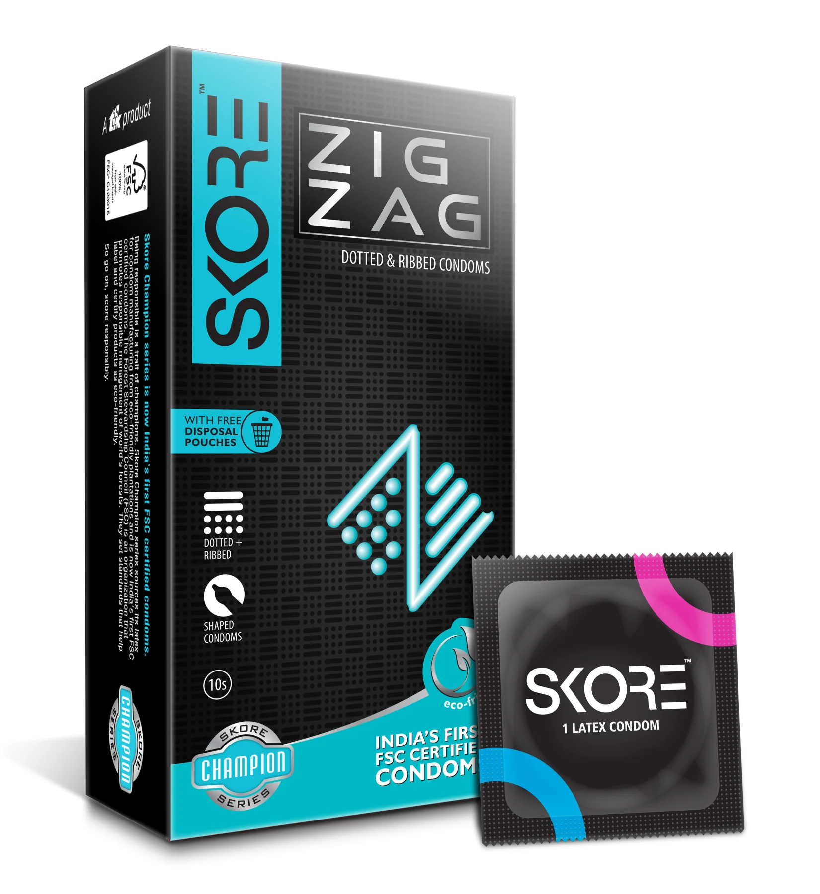 Enhance your intimate moments with Skore ZigZag Dotted & Ribbed Condoms – 10’s Pack. Designed with a unique zigzag dotted and ribbed texture, these condoms help increase stimulation and deliver heightened pleasure.