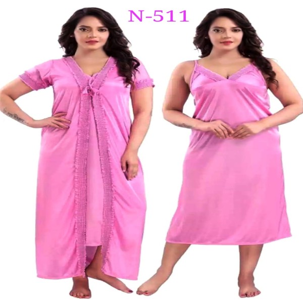 Stylish Design: The two-part set features a long solid night dress and nighty, both designed to be fashionable and stylish while also providing comfort.