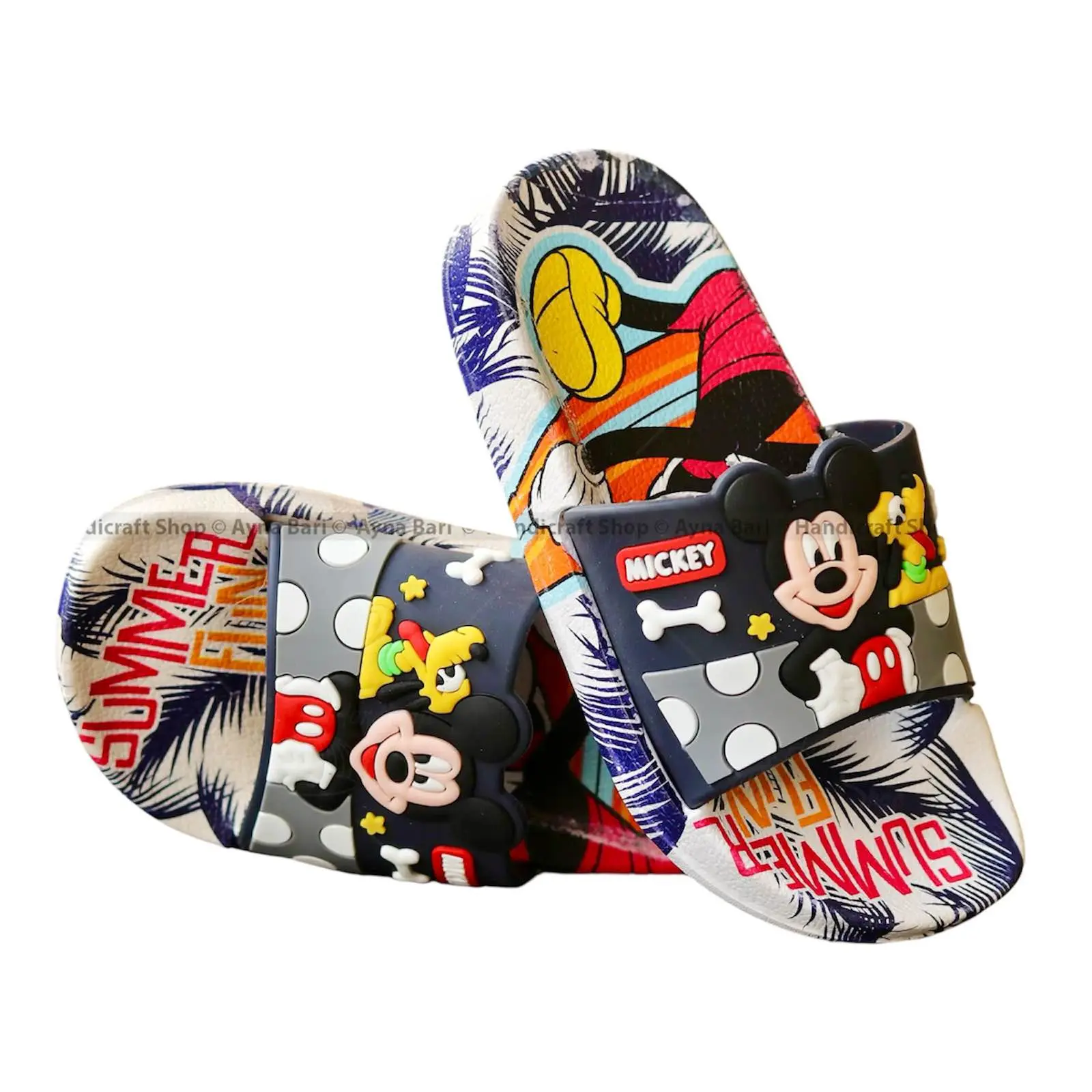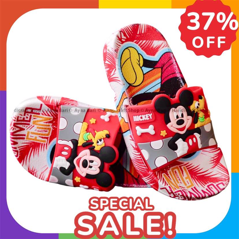 Slides For children | Slippers for boys sandals for kids room | Slides Slipper for Summer Slippers Shoes Graffiti Open Toe Low Platform Flip Flops Outdoor Flat Beach Slides Sandals cartoon Cute Micky mouse indor Non outdoor children's slippers.