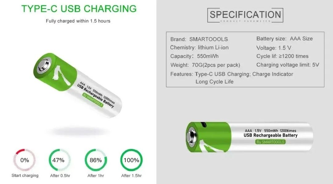 LED Indicators: Blink when charging, Stay on when full charged