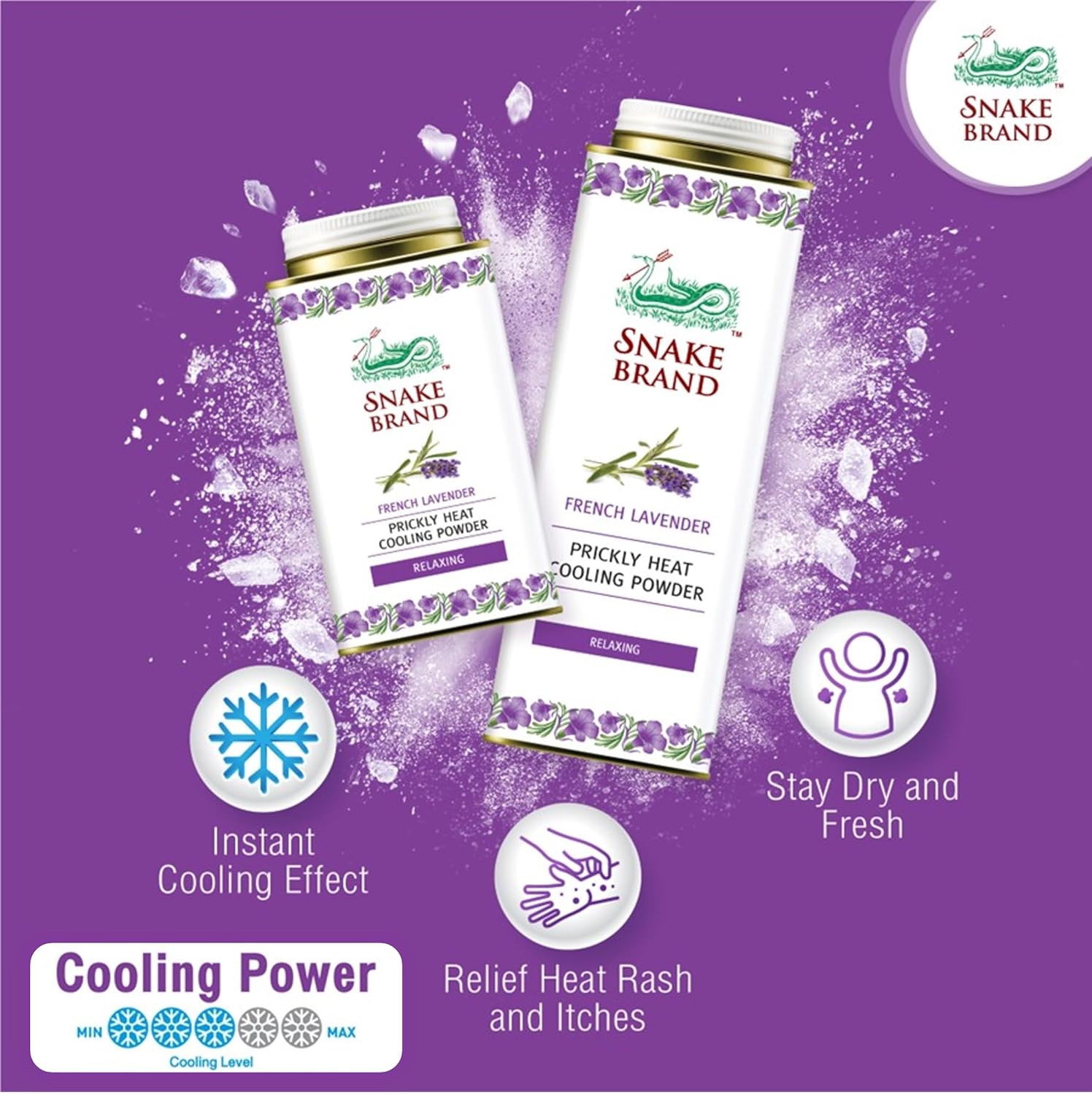 Snake Brand Prickly Heat Everyday Use Anti-Chafing Heat Rash Relief Cooling Powder Lavender Scent (Thailand) - 280g