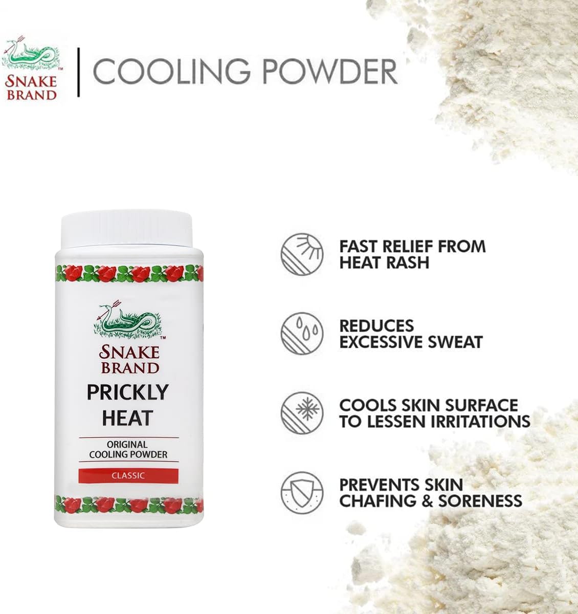 Snake Brand Prickly Heat Everyday Use Anti-Chafing Heat Rash Relief Cooling Powder (Thailand) - 50g
