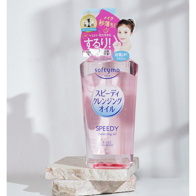 Effortlessly melt away makeup, sunscreen, and impurities with Kose Softymo Speedy Cleansing Oil – Japan’s beloved quick-rinse oil cleanser. Formulated with a blend of lightweight yet effective cleansing ingredients, it removes even waterproof makeup without stripping your skin or leaving a greasy residue.