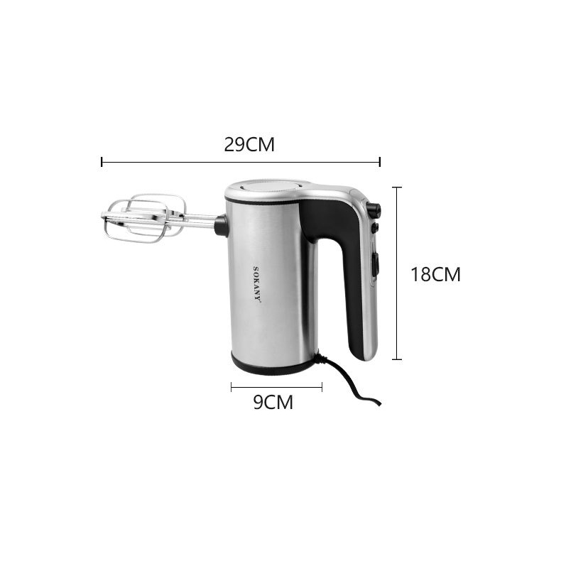 800 watts powerful motor can be a good choice for your kitchen. This mixer set includes 4 attachments, 2 dough hooks for whipping dough, 2 beaters for mixing ingredients and whipping eggs.