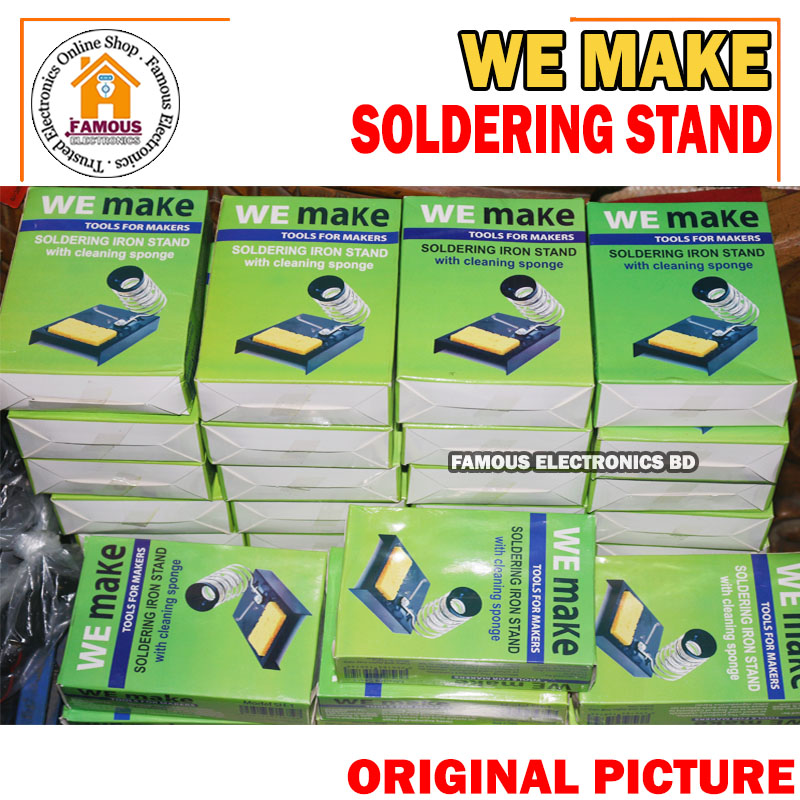 - This is a simple soldering iron stand composed of a metal base and a reinforced spring holder.