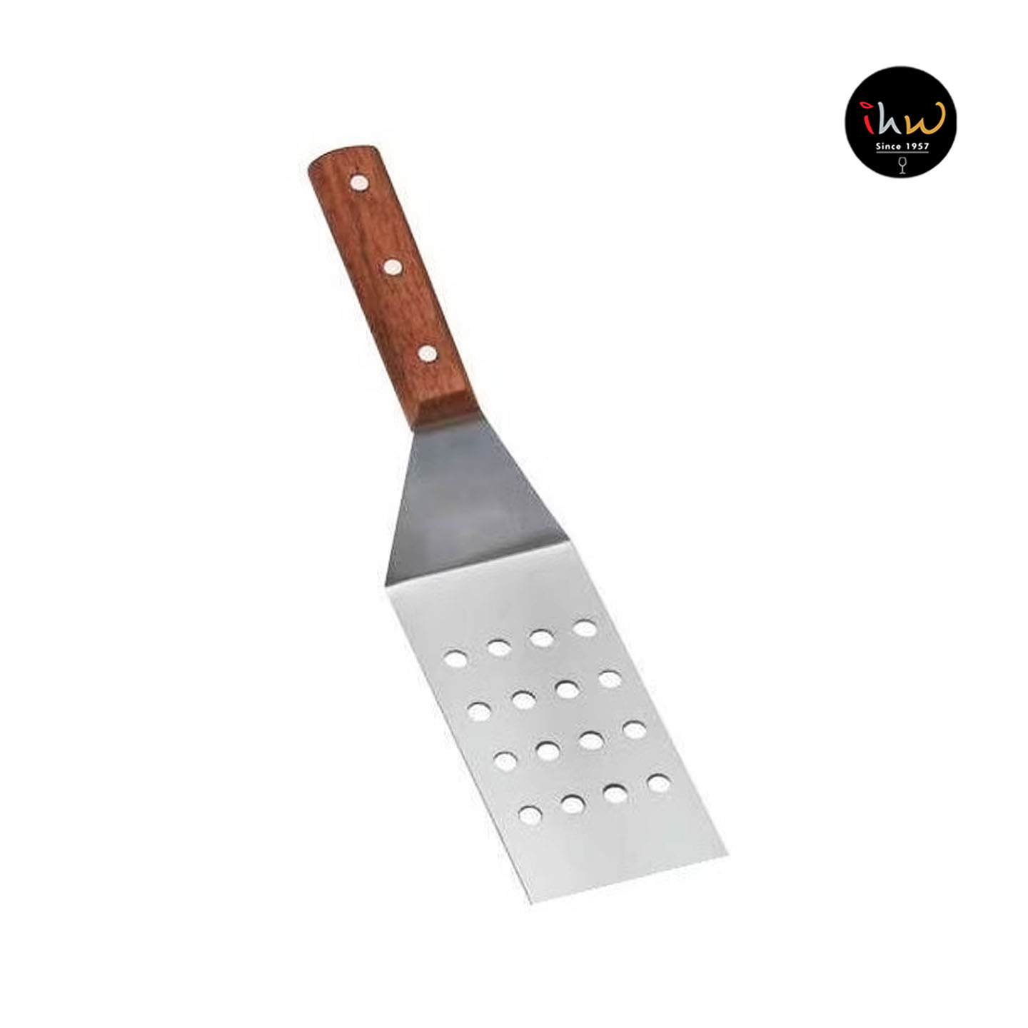 The IHW Stainless Steel & Wooden Handle Spatula combines durability, comfort, and style, making it an essential tool for professional and home kitchens. Designed with a sturdy stainless steel blade and an ergonomic wooden handle, this spatula ensures reliable performance whether flipping pancakes, burgers, or serving at buffets.