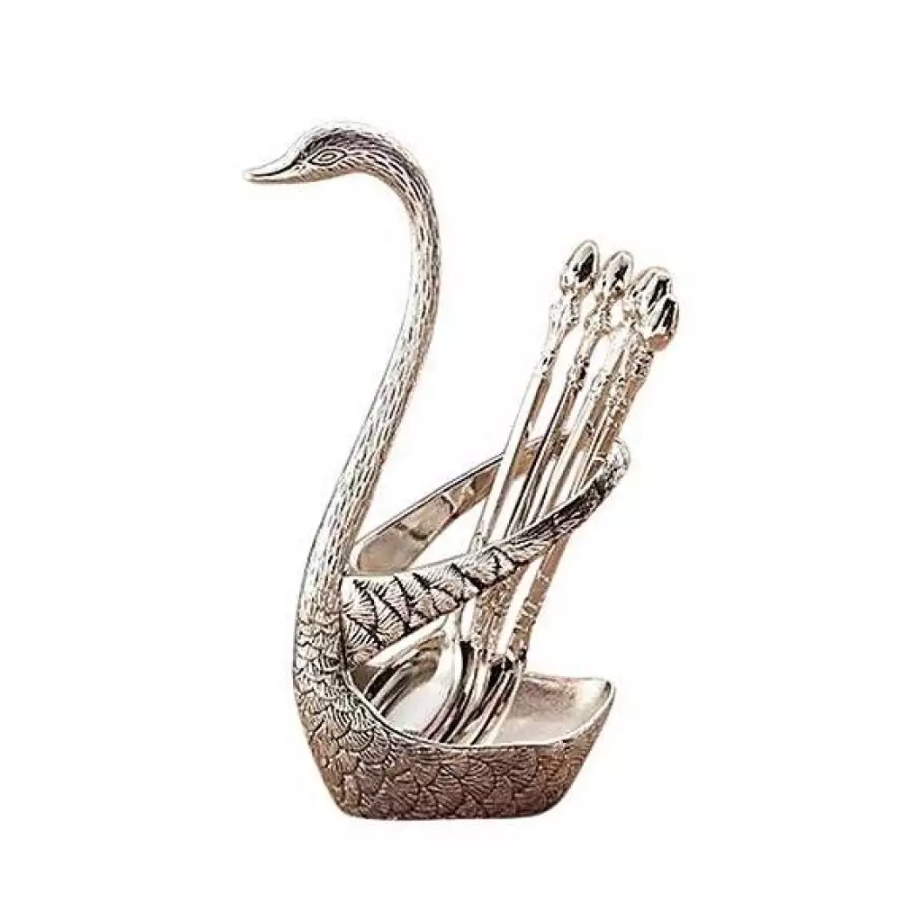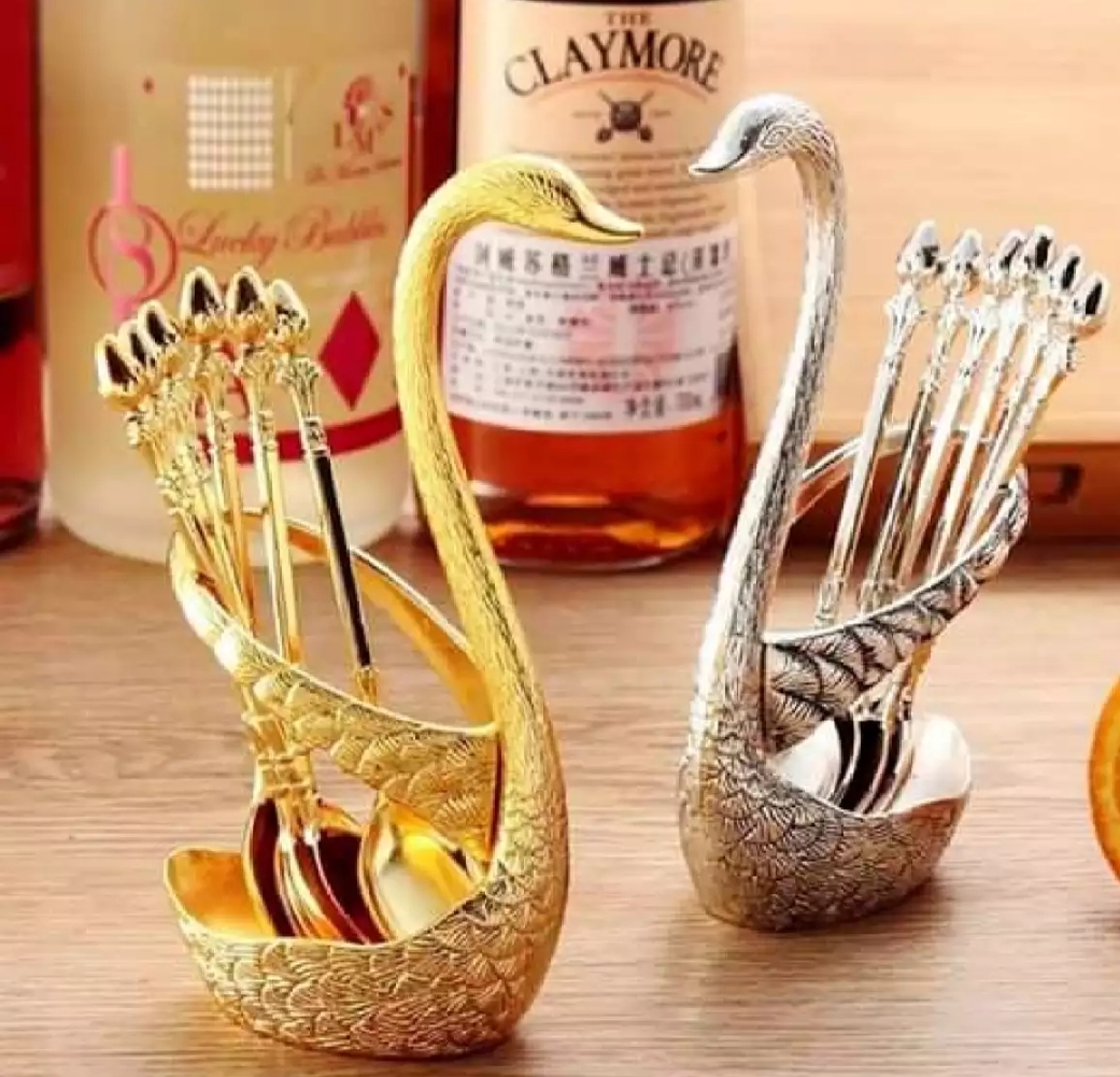 - 6 Spoons Set and 1 swan stand