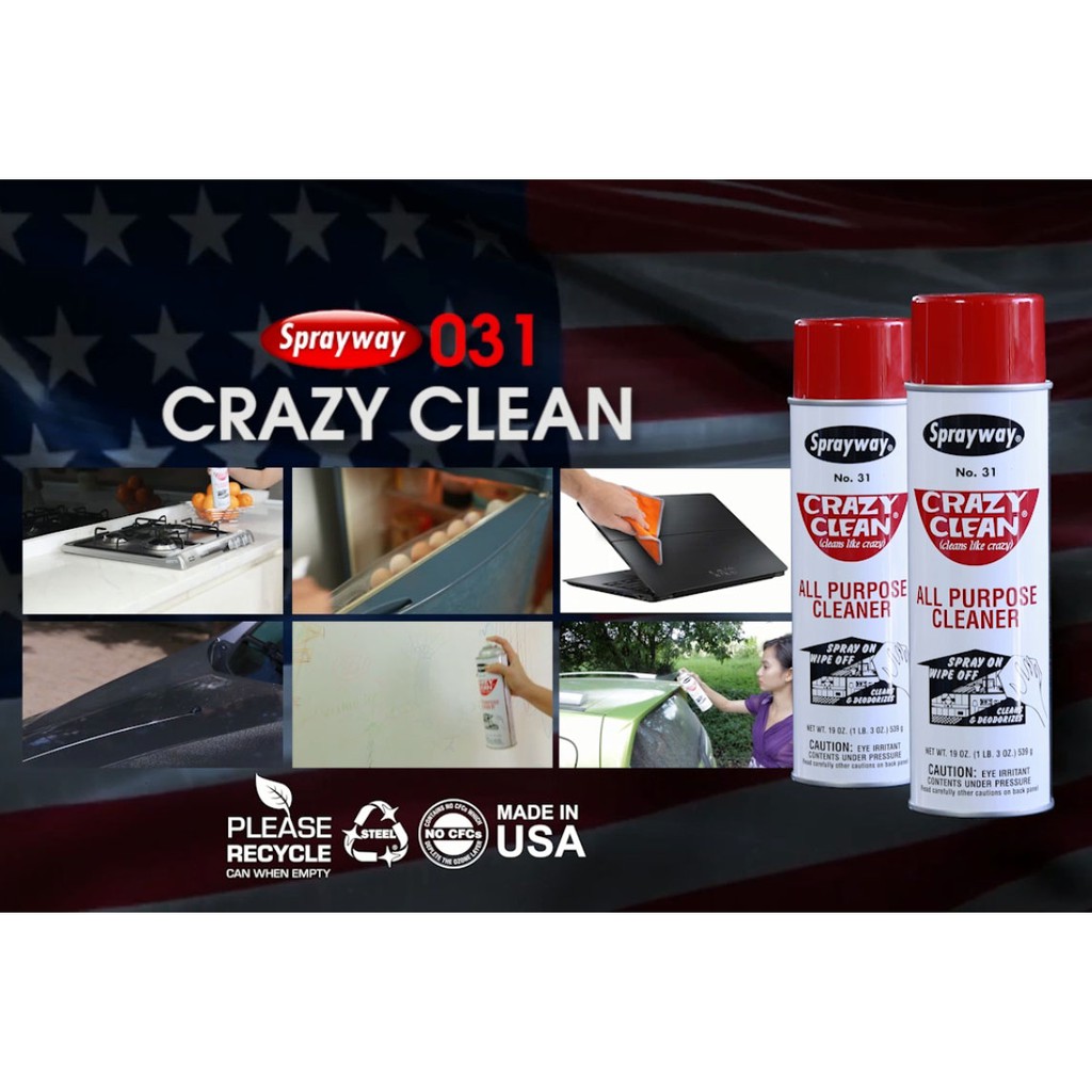 - Ingredients : Water (Aqua) (7732-18-5), 2 Butoxyethanol (111-76-2), Tetrasodium EDTA (64-02-8), Cetyl Dimethyl Amine Oxide (7128-91-8), Liquefied Petroleum Gas (68476-85-7) Brand : PLZ AEROSCIENCE (SPRAYWAY, USA) Item Form : Spray Item Net Weight : 1.5 Pounds/539gm Contains Liquid : NO Contents About this item : * Cleans and Deodorizes * Great for a wide range of cleaning applications * Available in a 19oz aerosol can * Spray on and wipe off * Cleans & deodorizes * Non-abrasive * Breaks up grease and grime * Wide range of cleaning applications