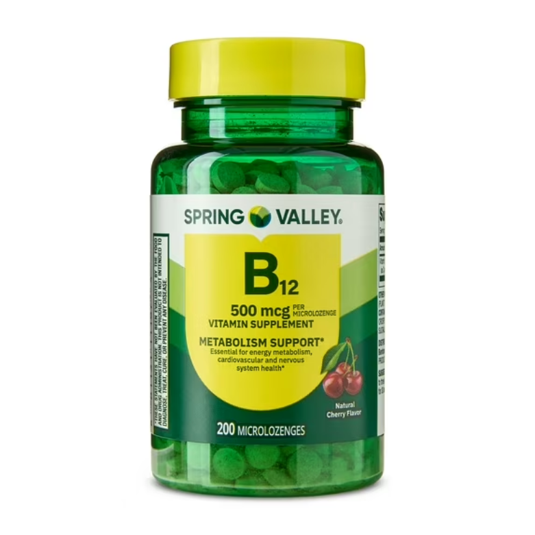 Spring Valley Sublingual Vitamin B12 Supplement Microlozenges, Cherry Flavor, 500 mcg, 200 Count are a convenient and delicious way to support your body’s energy and metabolism. Each fast-dissolving microlozenge delivers a potent dose of Vitamin B12, an essential nutrient that helps convert food into energy and supports nervous system health.