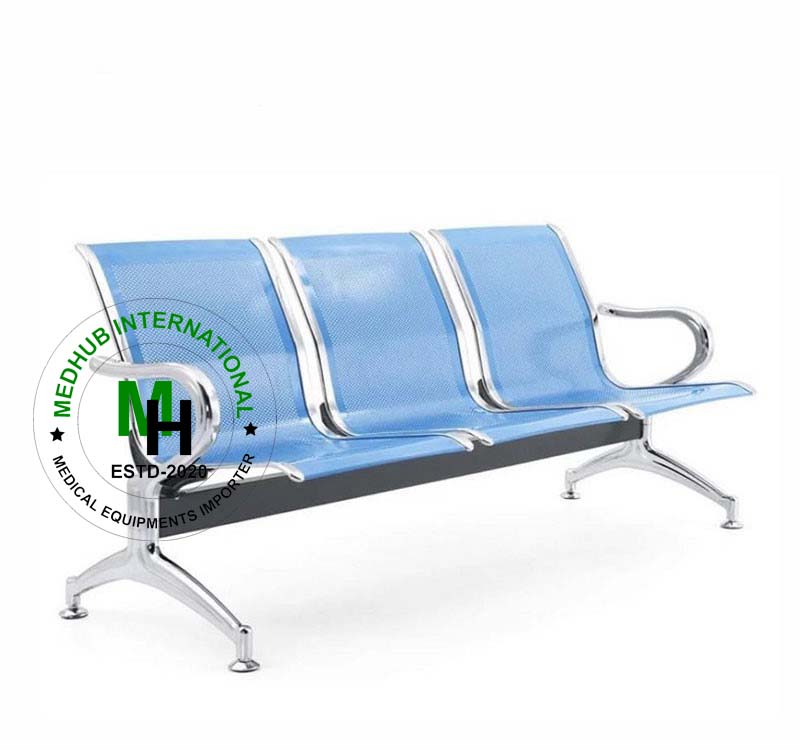 Stainless Steel 3 seater Weighting Chair for Hospital/Home Use - Blue