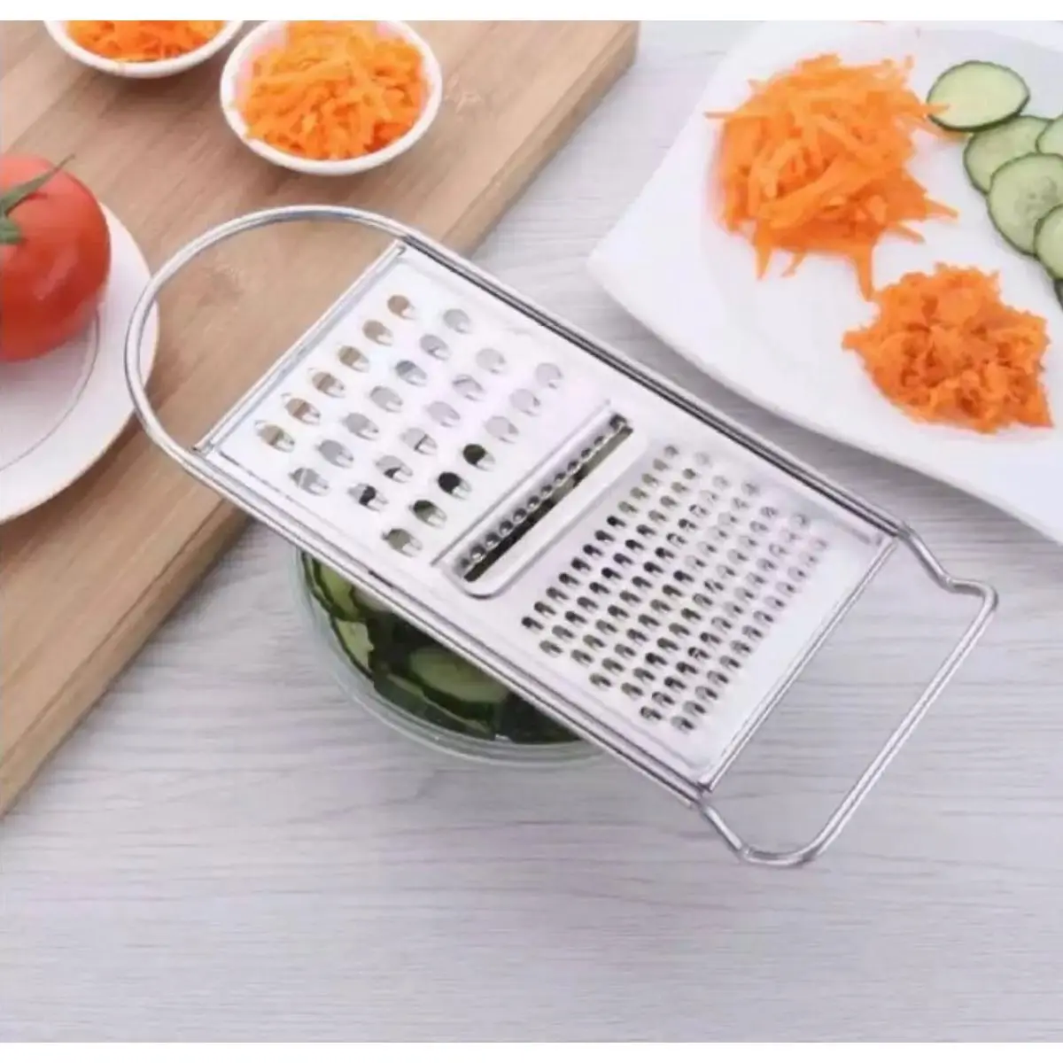 • ✦ Large Ergonomic Handle & 3 Way Area: The ergonomic handle is comfortable and easy to hold, which gives you good control. 3 Way Area: This versatile and efficient flat 3 Way Grater is a treasure for every kitchen. Grates, slices, and shreds with three different cutting areas